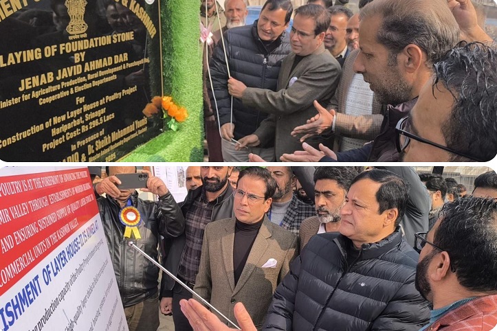 Early Times Report SRINAGAR, Nov 16: Minister for Agriculture Production, Rural Development and Panchayati Raj, Cooperative and Election Departments, Javid Ahmad Dar today laid the foundation stone of Layer House-II at the Poultry Project, Hariparbat. He was accompanied by MLA Zadibal, Tanvir Sadiq, on the occasion. During the visit, the Minister also reviewed the overall functioning of poultry sector, emphasising on improving efficiency and productivity. He directed the concerned department to formulate a holistic action plan aimed at making the poultry sector self-sufficient and a key driver of J&K's economy. The Minister reiterated the government's commitment to empowering farmers, enhancing local production, and creating robust livelihood opportunities through sectoral reforms and targeted interventions. The new facility marks a significant step forward in strengthening Jammu & Kashmir's poultry sector. The upcoming Layer House-II will have the capacity to rear 1,900 parent stock birds and produce 1.70 lakh hatching eggs annually, greatly boosting the availability of high-quality layer chicks for farmers and field units across the region. This expansion is expected to play a crucial role in meeting local demand and promoting sustainable poultry production. |