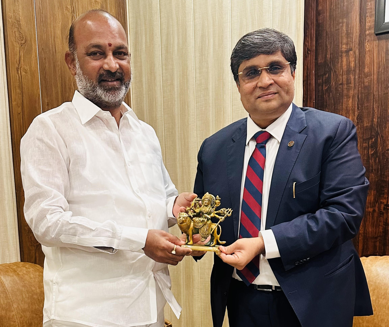 Early Times Report JAMMU, Nov 22: Rahul Sahai, Chairman of the Indian Chamber of Commerce (ICC) Jammu & Kashmir, called on Shri Bandi Sanjay Kumar, Hon'ble Minister of State for Home Affairs, Government of India, during the Minister's visit to Jammu today . The meeting was a courteous interaction, reflecting ICC Jammu's continuous engagement with the J&K Government on matters concerning trade, industry, and overall economic growth of the region. During the interaction, Sahai presented an idol of Mata Vaishno Devi Ji to the Hon'ble Minister as a gesture of respect and goodwill, and also extended a warm invitation to him to visit the holy shrine for Devi Darshan. Sahai apprised the Minister of the evolving industrial landscape of Jammu & Kashmir and highlighted the major reforms and improvements witnessed since 2020 under the leadership of Hon'ble Lieutenant Governor Shri Manoj Sinha ji, particularly in infrastructure, industrial policy, investment facilitation, and business climate enhancement. He further stated that the newly formed government under Chief Minister Shri Omar Abdullah and his cabinet is carrying these initiatives forward, ensuring continuity in growth-led governance and support to the industrial sector. In the meeting, Sahai discussed several important matters related to trade and commerce, such as strengthening industrial security, improving interstate logistics and supply chain movement, addressing infrastructure and land allotment gaps, enhancing warehousing and cold-chain facilities, boosting MSME competitiveness, and fostering smoother coordination between trade bodies and government departments for timely resolution of issues. He emphasized the continued need for support from the Union Government to accelerate industrial expansion, improve ease of doing business, and create a stable and investor-friendly environment in Jammu & Kashmir. The Minister appreciated the perspectives shared by Sahai and assured that the Ministry will remain supportive toward strengthening the trade and industry ecosystem of the Union Territory.