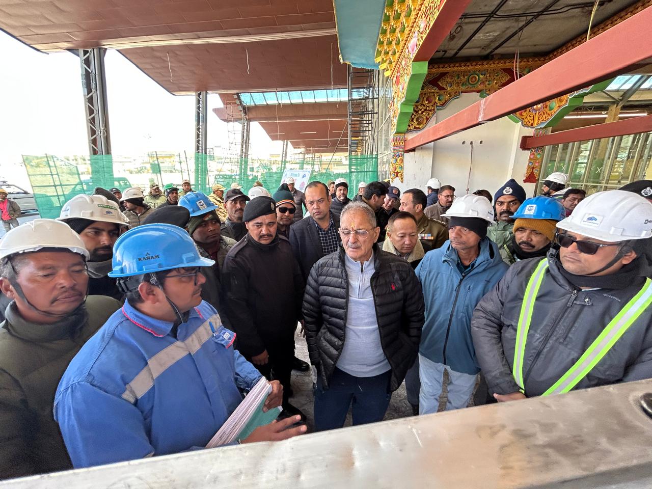 Leh, Nov 24: The Hon’ble Lieutenant Governor of Ladakh, Shri Kavinder Gupta, conducted an on-site inspection of the New Terminal Building at Kushok Bakula Rimpochee Airport, Leh and reviewed the pace of construction and integration of modern, sustainable technologies. During the visit, the Lt Governor expressed satisfaction over the significant progress achieved and commended the project team for adopting cutting-edge green technologies, including a first-of-its-kind geothermal temperature-regulation system, extensive solar integration, and eco-sensitive architectural planning tailored to Ladakh’s climatic conditions. He noted that the upcoming terminal will stand as a benchmark for sustainable infrastructure in high-altitude regions. Shri Kavinder Gupta emphasised that the new terminal will not only enhance passenger capacity and air connectivity but will also serve as a gateway reflecting the distinct cultural identity of Ladakh. He appreciated the efforts made to incorporate traditional Ladakhi motifs and design elements, ensuring that the terminal resonates with the region’s heritage while offering world-class travel amenities. The Lt Governor highlighted that the project aligns closely with Ladakh’s vision of becoming a carbon-neutral Union Territory, and said that the airport’s modern green features demonstrate the UT Administration’s commitment to innovation, environmental stewardship, and high-quality public infrastructure. Reviewing key components such as passenger facilities, safety systems, terminal layout, and airside works, Shri Gupta urged the officials to keep the momentum high and complete the project within the stipulated timeline to meet the growing travel demands of Ladakh. Project Director, Shri A. Umashankar, briefed the Lt Governor on the operational features of the new terminal, including aerobridges, automated systems, enhanced passenger circulation areas, and increased departure gates. He reaffirmed that the terminal is targeted for completion by April–May 2026. Senior officials from the Airports Authority of India, Shapoorji Pallonji Group, and Commissioner/Secretary Civil Aviation, Dr. L. Franklin accompanied the Lt Governor during the inspection. |