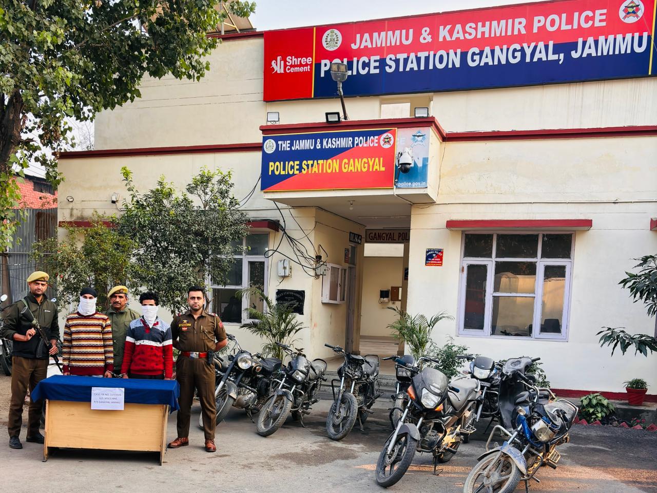 Jammu, Nov 25: Jammu Police, South Zone has made a significant breakthrough by recovering more than 10 stolen motorcycles and busting an active theft network operating across multiple parts of Jammu. Acting under the overall supervision of SP South Jammu and continuous guidance of SDPO South, police station Gangyal launched a focused crackdown after noticing a sudden spike in vehicle thefts within its jurisdiction. SHO Police Station Gangyal formed special teams to trace the culprits, with a dedicated unit led by PSI Atta-ur-Rehman, assisted by SgCT Manpreet Singh and SPO Tarsem Lal. The team conducted extensive field work, analyzed crime patterns, worked on technical inputs, and searched several suspected locations commonly used for concealing stolen vehicles. Their persistent and systematic efforts resulted in the recovery of over 10 motorcycles linked to multiple theft cases across different police stations. This major recovery sends a strong message to criminal elements that Jammu Police is fully committed to maintaining law and order. The coordinated supervision of senior officers and round-the-clock efforts of the Gangyal team have reinforced public confidence. Further investigation continues, and more recoveries and arrests are anticipated as the network is completely dismantled. |