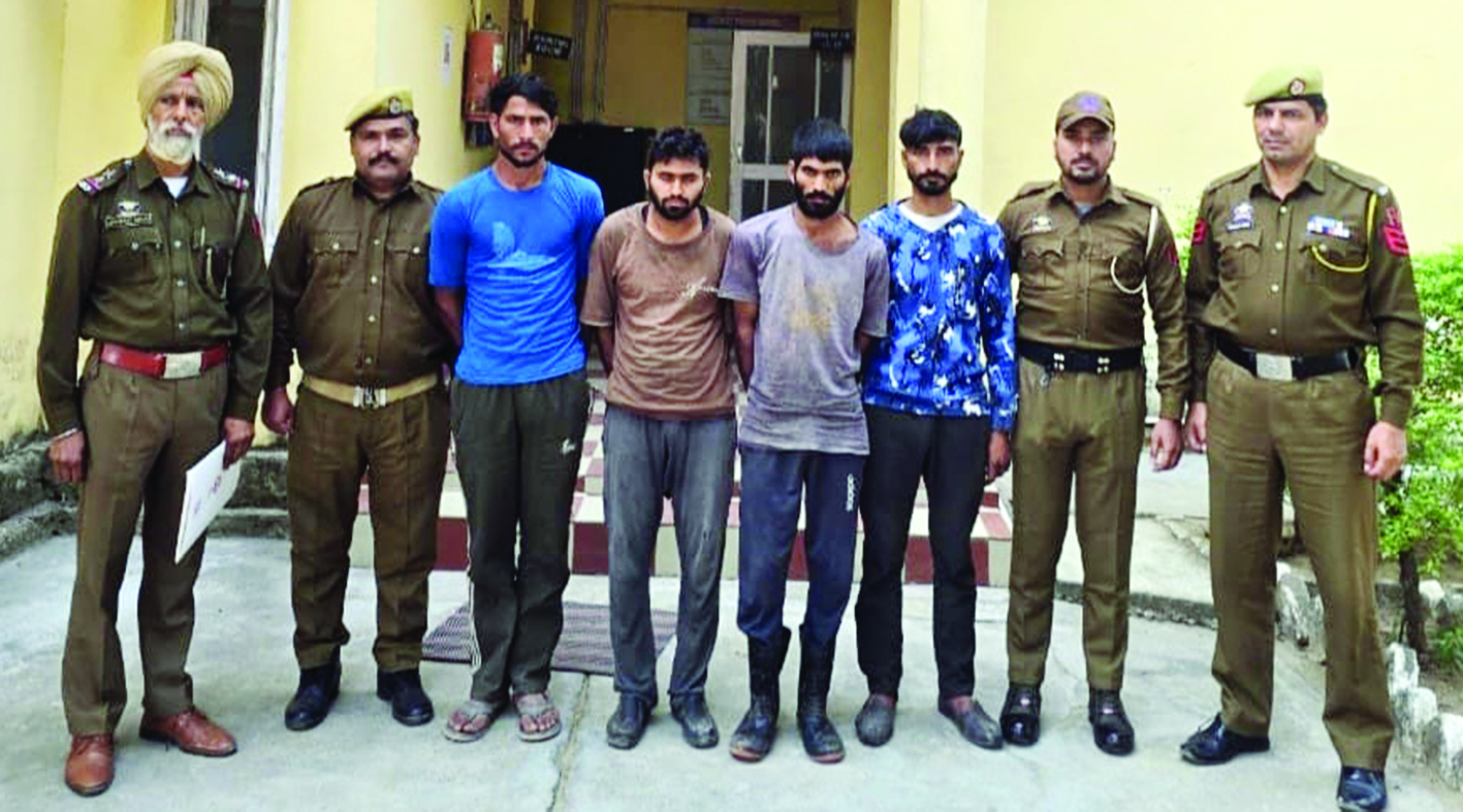 | Samba police worked out cattle theft case within 24 hours; 4 accused arrested, 4 stolen cattle recogvered | | | Early Times Report SAMBA, Nov 26: Samba Police has successfully worked out a cattle theft case registered at Police Station Samba within 24 hours, arrested four accused and recovered four stolen cattle. On 25-11-2025, a written complaint was lodged at Police Post Rakh Amb Talli of PS Samba by a person namely Jagtar Singh S/o Bara Singh R/o Sordi, Pangdour district Samba regarding theft of four bovines from his house during the intervening night of 24/25-11-2025 by some unknown miscreants. Acting over the complaint, a case FIR No. 289/2025 U/S 331(4)/305(a) BNS was registered at Police Station Samba and investigation started. Taking prompt action into the matter, SSP Samba constituted a special team headed by Incharge PP Rakh Amb Talli assisted by Incharge BPP Pangdour under the supervision of SHO PS Samba and DySP DAR Samba to work out the said theft case. During the course of investigation, Police team after sustained efforts alongwith technical assistance, arrested four accused persons involved in the said theft case from Bari Brahmana (district Samba), Bishnah and Domana area of district Jammu and recovered all the four stolen bovines from their possession. The arrested accused persons have been identified as 1. Mohammad Rakhman @Anu S/o Ibrahim R/o Kothey Sainian tehsil Bishnah district Jammu, 2. Ramjan Mohammad S/o Meenu R/o Dhraman tehsil Basholi district Kathua, A/P Raipur Domana district Jammu, 3. Abu Bilal S/o Mohammad Yusuf R/o Mathola Bhaderwah district Doda A/P Tanda Burj tehsil & district Samba and 4. Jhan Mohammad S/o Fathey Ali R/o Jhakhar Shivnagar tehsil & district Udhampur A/P Bari Brahmana district Samba. Further investigation of the case is going on. |