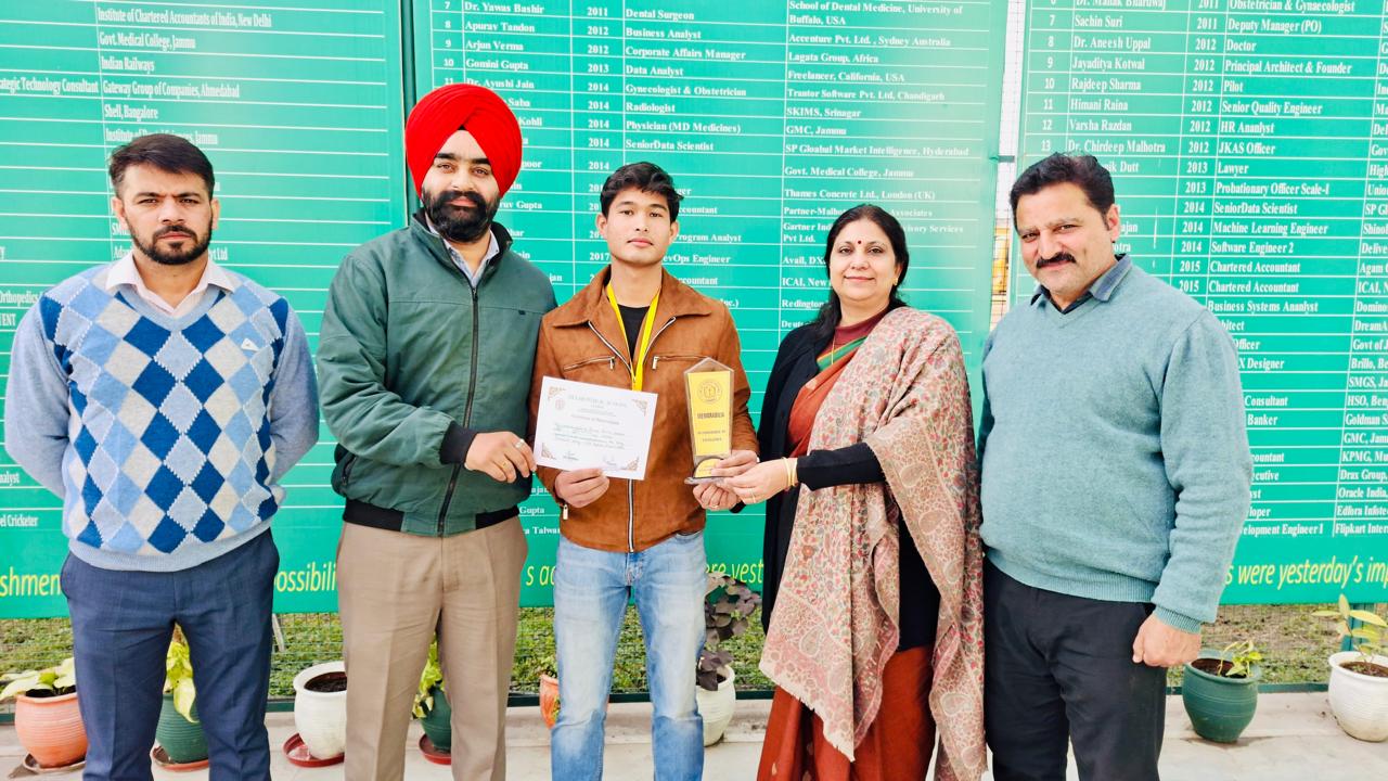 Jammu, Nov 26: Delhi Public School Jammu is elated to announce the outstanding achievement of its alumnus, Radha Raman Sharma, Batch 2024–25, who has secured an impressive All India Rank 11 in the prestigious Technical Entry Scheme (TES)–54 of the Indian Army. He received his recommendation from the esteemed 19 SSB Allahabad, marking a proud moment for the entire DPS Jammu fraternity. A shining example of perseverance, discipline, and clarity of purpose, Radha Raman’s journey is inspiring in every sense. His parents and teachers have played a pivotal role in shaping his path, offering constant guidance, motivation, and unwavering support during every challenging phase. Alongside academic excellence, Radha Raman displayed exceptional talent in athletics. A highly accomplished gymnast, he has represented at four national-level gymnastics competitions, bringing laurels to the school and the UT. His leadership qualities, exceptional communication skills, and remarkable clarity of thought have set him apart as a well-rounded achiever. Earlier, Radha Raman also proved his academic mettle by cracking the JEE Mains examination in his first attempt, securing an impressive 95.6 percentile. He is currently pursuing Computer Engineering at Thapar University, Patiala, further strengthening his foundation in technical and analytical domains. What makes this achievement even more special is that Radha Raman becomes the first member of his family to join the Indian Army, proudly carrying forward a legacy of dedication and service to the nation. As a token of appreciation for his exemplary achievement, Principal DPS Jammu, Ms. Ruchi Chabra, presented him with a Memento, a Certificate of Appreciation, and a Gold Medal. The esteemed management of DPS Jammu under the visionary leadership of Hon’ble President-RCT, Sh. M.K Ajatshatru Singh Ji, Distinguished PVC-Kuwarani Dr. Ritu Singh Ji, Hon’ble Director-Sh. S.S. Sodhi Ji, along with Principal, Ms. Ruchi Chabra, and staff congratulated Radha Raman and his proud parents, Mr. Suresh Sharma and Mrs. Manisha Sharma, on this remarkable achievement. They also extended their best wishes to him for all his future endeavours. |