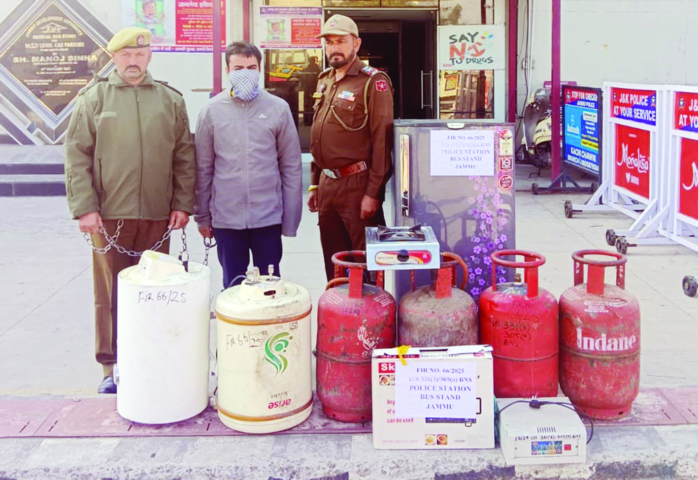 Early Times Report JAMMU, Nov 27: Jammu Police have achieved success in a theft case registered under FIR No. 66/2025 U/S 305(a), 331(3) BNS at Police Station Bus Stand. The case, reported on 02/11/2025, saw sustained and well-coordinated efforts by the investigation team to trace the accused and recover the stolen property. During the investigation, one suspect-Hamid Parvez, S/o Parvez Ahmed, R/o Tund Hidyal, Tehsil & District Kishtwar-came under suspicion. Through detailed questioning, technical analysis, and continuous follow-up, his involvement was conclusively established, leading to his arrest. Based on disclosures made by the accused during interrogation, the investigation team conducted multiple raids at different locations. These efforts resulted in the phased recovery of several stolen household items, including: Refrigerator - 01 Gas Cylinders - 04 Geysers - 02 Induction - 01 Inverter - 01 Gas Chulha - 01 Each recovered item was seized on the spot under proper seizure memos, sealed, and deposited in the Malkhana of Police Station Bus Stand. Further investigation is underway to ascertain the involvement of any other persons and to effect additional recoveries. Jammu Police reiterates its firm commitment to ensuring public safety, upholding the rule of law, and taking swift, effective action against all forms of crime. The force remains dedicated to protecting the life and property of citizens with professionalism and vigilance. |