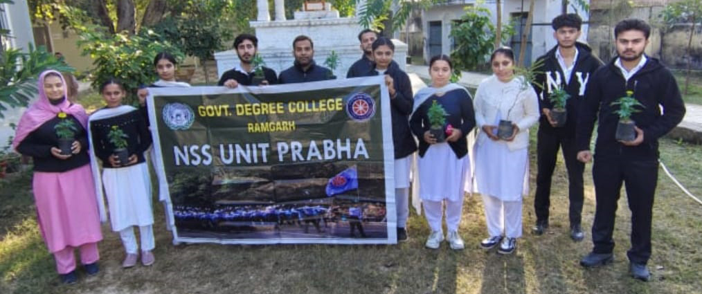 Early Times Report RAMGARH, Nov 28: The NSS Unit "Prabha" of Government Degree College, Ramgarh, organized a Plantation Drive as part of a series of activities to mark the celebration of Constitution Day. The initiative aimed to instill values of environmental stewardship, civic responsibility, and sustainable living among the youth. A total of 12 students and faculty members participated with great enthusiasm, making the event a vibrant and meaningful contribution to the college's ongoing efforts toward ecological awareness. The drive was conducted under the guidance of Principal Dr. Meeru Abrol, who commended the dedication of the participants. In her address, Dr. Abrol emphasized that environmental protection is not merely a duty but a collective responsibility requiring consistent effort. She highlighted how plantation drives serve as practical steps toward combating climate change, reducing pollution, and preserving biodiversity. Dr. Abrol encouraged students to adopt tree plantation as a lifelong habit and to nurture the saplings they planted, thereby ensuring that the initiative translates into long-term impact. The programme was meticulously coordinated by NSS Programme Officer Prof. Brham Dutt, who motivated students to actively engage in the plantation activity. He reminded them that nurturing trees is not only an act of environmental care but also a way of cultivating discipline, patience, and responsibility. Prof. Dutt stressed that the NSS motto "Not Me, But You" finds true expression in such collective efforts, where individual contributions add up to a larger social good. The plantation drive included the planting of saplings within the college premises, with participants pledging to care for them regularly. The initiative spread the message of protecting and preserving our environment, while fostering a vision of a greener, cleaner, and healthier future. |