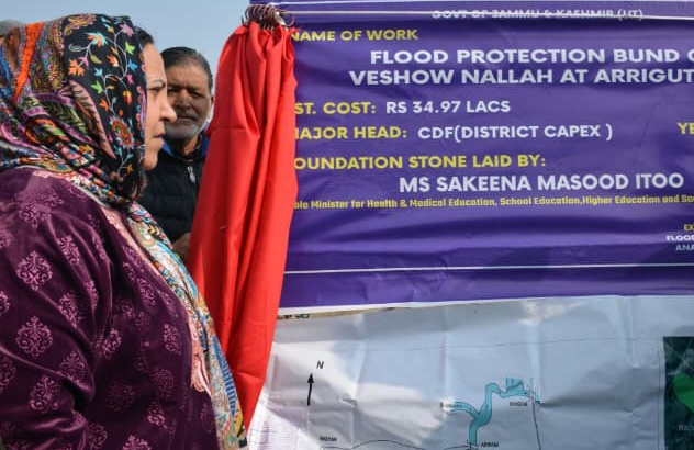 Early Times Report KULGAM, Nov 29: Minister for Health and Medical Education, Social Welfare and Education, Sakeena Itoo today laid foundation stones of multiple flood mitigation projects in several areas of Kulgam district. The initiative is part of Government's major push towards strengthening flood mitigation infrastructure in areas like Arrigutnoo, Gudder, Nehama and Laisoo along the Veshow Nallah as well as on Nallah Gujerpora across Kulgam district. The projects, sanctioned at an overall estimated costs of around 1.50 crores under the CDF (District Capex) for the year 2025-26, aims to safeguard habitations and agricultural land along the vulnerable stretches of Veshow Nallah, thereby reducing the risk of flood damage during high-flow of water. It also marks a major step towards safeguarding vulnerable communities and reinforcing critical infrastructure in a region frequently impacted by seasonal flooding. Addressing the locals at various locations, the Minister emphasized on the government's commitment to protecting lives, livelihoods, and essential services. She noted that the new projects, ranging from channelization works and embankment strengthening, are designed to address long-standing challenges faced by residents during periods of heavy rainfall and other natural calamities. "These projects are not merely infrastructure upgrades, they are investments in security, stability, and well-being of our people," the Minister stated. She added that by prioritizing flood management, Government ensures that communities in Kulgam have stronger protection against natural calamities and uninterrupted access to essential health and public services. Minister further highlighted the Government's continued commitment to enhancing flood protection measures and ensuring the safety of communities living along riverbanks and Nallahs. Sakeena Itoo emphasized that such projects are vital for long-term resilience building and protection of public assets. The locals, while interacting with the Minister at various locations, expressed gratitude to the Minister and Government for addressing long-pending demand aimed at protecting the area from recurrent flood threats, adding that these improved flood protection will bring a greater sense of safety and significantly reduce damage to homes, farmland, and key infrastructure. |