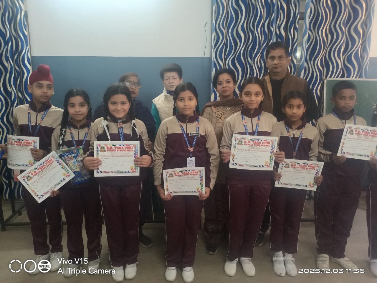| Inter house Maths quiz competition held at SD Tara Puri Public School | | | Early Times Report JAMMU, Dec 5: An Inter house Maths Quiz competiton for the students of class 5th was successfully orgsnised on 5th Dec. 2025 in the school premises of S.D Tara Puri Public High School. The competition aimed at enhancing the mathematically skills, logical thinking and confidence of young learners. This Quiz was well structured and all the questions were thoughtfully prepared by Mrs. Ritu Gupta, ensuring a perfect blend of knowledge, reasoning and quick calculations. The students from all the houses participated enthusiastically and showed remarkable presence of mind and team work. The first prize clinched by the Jaskaran Singh and Tanvi of Prosperity House. The 2nd prized begged by Ànanta Dubey and Nishtha Sahni of Perfection House. The third prize begged by Manshika Behl and Gurseerat Kour of Peace House. Riya thakur and Ankit Mal of Potential House got participating certificates. The event encouraged healthy competition among the students and helped them developed a positive attitude towards the subject of Mathematics. The Principal Ms Neeru Puri and the staff appreciated the efforts of the participants and the organizer for making the event engaging and successful. |