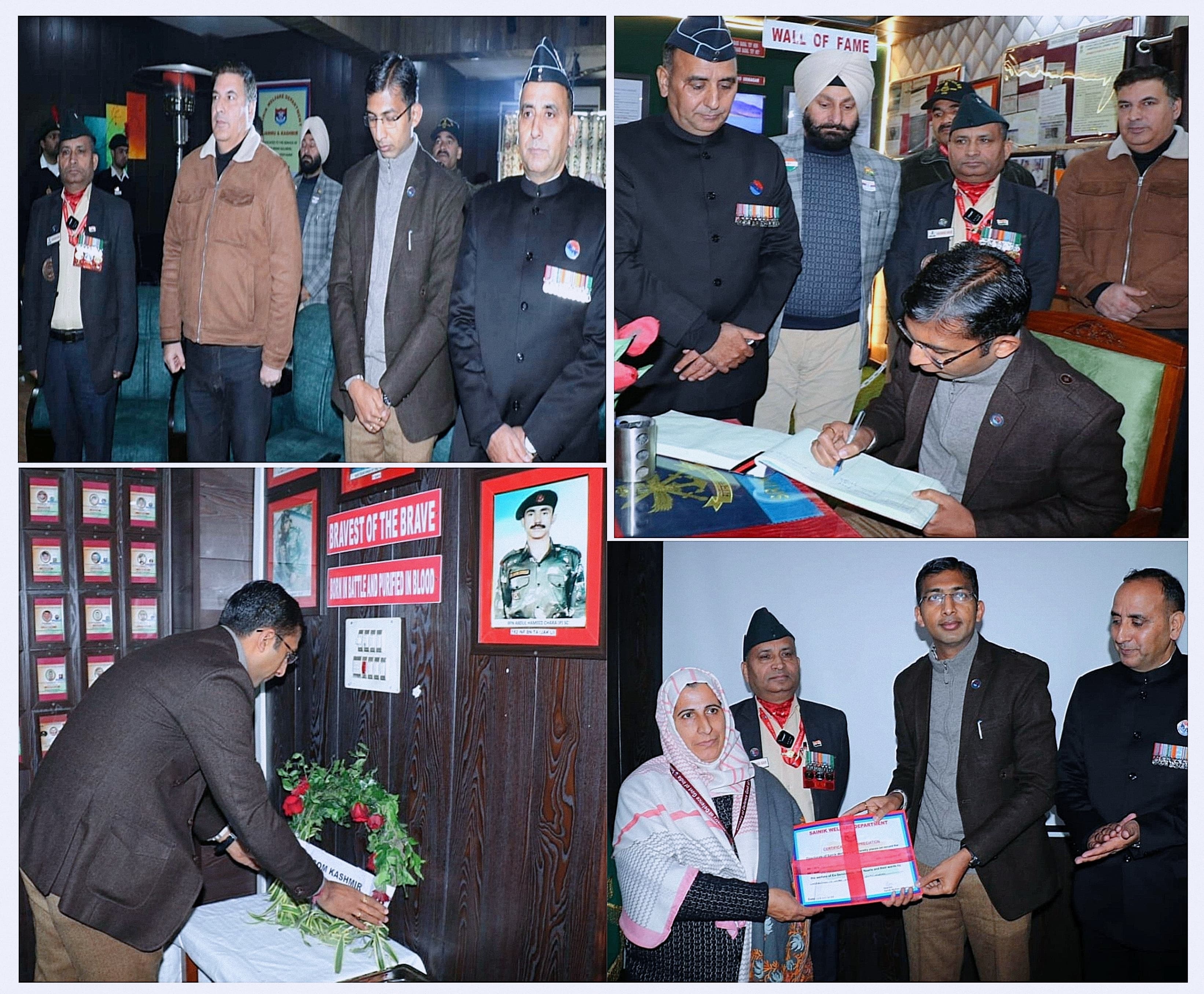 SRINAGAR, Dec 7: On the occasion of Armed Forces Flag Day (AFFD), a programme was organized at the Sainik Bhawan, Srinagar to honour the martyrs and men in uniform who voluntarily fought and continue to safeguard the country’s honour. The program was attended by Divisional Commissioner Kashmir, Anshul Garg who on the occasion held interaction with the veterans and assured all support from the civil administration towards welfare of Ex-Servicemen, War Widows and their families. The Ex-Servicemen community expressed gratitude to Divisional Commissioner Kashmir for the initiatives taken for the welfare of Ex-Servicemen and Widows. While paying homage to the extreme sacrifices and services of Armed forces, the Div Com said that soldiers are guardians of the nation who protect its citizens by sacrificing a lot of things in their lives. He said it becomes the duty of every citizen to not only show admiration for the martyrs and the living heroes but also to their families who have been a crucial part of their sacrifice. Apart from Govt. measures, the AFFD highlights the collective duty of citizens to make volunteer contribution towards providing care, support, rehabilitation and financial aid. ‘Flag Day’ brings to the forefront the commitment of looking after Veer Naris, disabled soldiers and families of martyrs. |