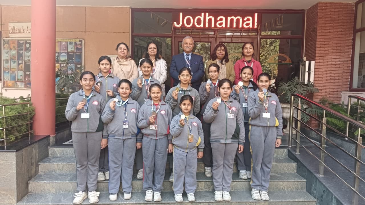 Jammu, Dec 10: Students of Jodhamal Public School put up an outstanding performance at the Khelo India Women League 2025. Fourteen talented girl athletes represented the school and achieved remarkable success by securing 12 medals in total, including 2 Gold, 3 Silver, and 7 Bronze, Gold Medal Winners are : Sharanya Gupta and Smaira Mahajan Silver Medal Winners are: Gursangad Kaur, Chitrakshi Kotwal and Navika Gupta Bronze Medal Winners are: Myra Verma,Saavya Gupta, Anaya Gupta, Rehanshi Mahajan, Kavya Langar, Priyal Luthra and Anika Verma The achievement was made possible by the continuous training and unwavering motivation provided by Coach Ms. Jahanvi Katal, who worked tirelessly to prepare the participants for the league. The Trustee, Mr. Nandan Kuthiala; Director, Ms. Arati Kuthiala; Principal, Dr. Deep Khare; and Vice Principal, Ms. Amita Arora, applauded the students and the coach for their exemplary dedication, discipline, and sportsmanship. The event witnessed energetic participation and competitive spirit, and the girls of Jodhamal stood out with confidence and skill, proving their excellence on the field Jodhamal Public School congratulates all the medalists and participants for bringing laurels to the institution and wishes them even greater success in the future.