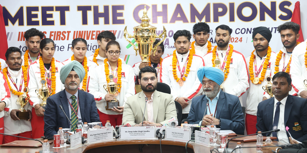 Early Times Report CHANDIGARH, Dec 12: Chandigarh University gave a heroic welcome to CU athletes at Sector 42 stadium in Chandigarh on their return from 5th Khelo India University Games (KIUG) 2025 in Rajasthan after creating history by topping the medal tally with a staggering haul of 42 Gold Medals, 14 Silver Medals and 11 Bronze Medals, making Chandigarh University first university in India to win the prestigious KUIG two years in a row. With this a standout performance delivered by its contingent consisting of 174 student athletes - 100 girls and 74 boys - to finish atop the medal table with 67 medals, Chandigarh University has become the first University in India to win Khelo India University Games consequently and retain overall championship for two years in a row ever since the inception of KIUG in 2020. Chandigarh University's winning contingent was warmly received by CU students, faculty and management members including Deepinder Singh Sandhu, Senior Managing Director, Chandigarh University along with players, coaches, sports department of the university and other university officials including advisor to Chancellor Chandigarh University Prof (Dr) RS Bawa, Professor and Executive Director (Administration) CU, Brigadier (Dr) Gagan Deep Singh Baath and CU's Deputy Director of Sports, Deepak Kumar Singh. The medal winners were welcomed with fireworks and drumbeats as the decorated open vehicle carrying them rolled into the Sector 42 stadium in Chandigarh amid playing of patriotic songs. The victory cerebration was attended by 20 medalists of Khelo India University Games 2025. These included Gold medalists Shivani Yadav (Weightlifting Gold), Mahaveer, Sitaram, Parhalad Kumar and S Sakshat Patra ( all Cycling), Rajni and Sweety (both wrestling), Vishal and Harpreet Singh Maan (Archery), Priya and Ankita Chandel (both Kabaddi) and Rahul (Athletics). Silver medalists Kumbheswar Mallik (Weightlifting) and Mukul (Cycling) along with Bronze medalists including Kaashvi Gupta (Table-Tennis), Sukrant (Shooting), Himanshi Singh (Cycling), Chutki (Volleyball), Priya (Volleyball) and Gaurav (Fencing) also attened by victory celebration. |