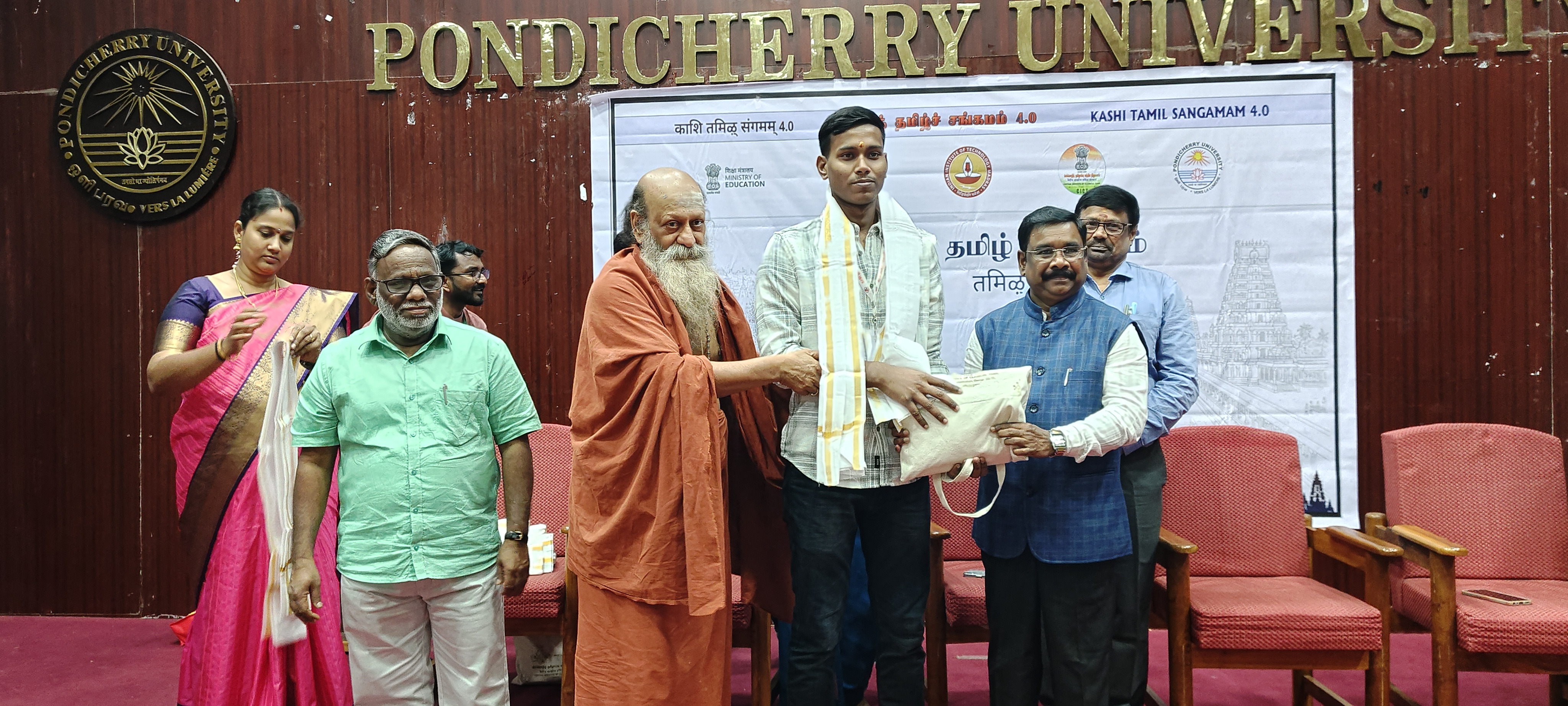 Chennai, Dec 23: Pondicherry University inaugurated the ten-day “Tamil Karkkalam” (Let’s Learn Tamil) workshop under Kashi Tamil Sangamam 4.0 at the Subramaniya Bharathiyar School of Tamil Language and Literature, in collaboration with the Central Institute of Classical Tamil, Chennai. This national initiative by the Ministry of Education, Government of India, promotes cultural integration and Tamil heritage among students nationwide. Thirty students with faculty coordinators from Uttar Pradesh institutions attended. Prof. M. Karunanidhi, Head of the Department, welcomed the gathering, followed by a traditional “kuthuvilakku” lamp-lighting by dignitaries and Banaras Hindu University’s program coordinator, Dean Prof. Dr. Sudlai Muthu delivered the keynote. Vice-Chancellor Prof. P. Prakash Babu inaugurated the event, stressing multilingualism in curricula and calling on students to learn Tamil “with heart rather than tongue and intellect” inside and outside classrooms. He highlighted ancient spiritual ties between Tamil Nadu and Kashi, stating cultural North-South exchanges strengthen national integrity. His Holiness Sri Sivagnana Balaya Swamigal, 20th Pontiff of Mailam Pommapura Adheenam, encouraged participants, linking Kashi to Thirupnathazh Madam and praising Tamil alphabets’ simplicity. The Vice-Chancellor and His Holiness honored attendees with shawls and memorial bags; Dr. A. Lakshmi Duttai, Assistant Professor and coordinator, gave the vote of thank. |