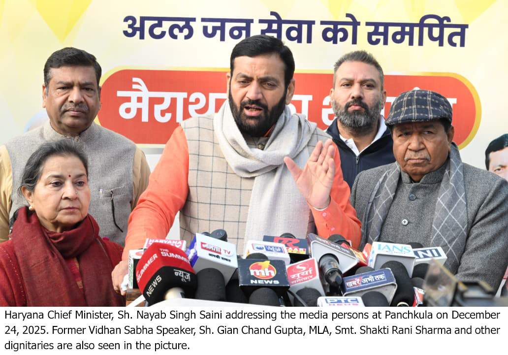 Chandigarh, Dec 24: Haryana Chief Minister Sh Nayab Singh Saini today flagged off a run dedicated to public service, organized by the trainees of Batch No. 93 of the Haryana Police, from Yavanika Park in Sector 5, Panchkula. Addressing the occasion, the Chief Minister said that the run, organized to commemorate the birth anniversary of Bharat Ratna and former Prime Minister, Shri Atal Bihari Vajpayee, symbolizes unity, discipline, and the spirit of national service. He informed that later this evening, Union Home and Cooperation Minister Shri Amit Shah will administer the oath to the largest police passing-out batch in the history of the Indian Police. The historic batch comprises a total of 5,061 personnel, including 4,191 men and 870 women. With women constituting 20.75 percent of the batch, this achievement marks a significant step forward in the direction of women’s empowerment, he added. Target to raise women's participation in Haryana Police to 25 percent He said that in 2014, women’s participation in the Haryana Police stood at just 3 percent, which has now increased to over 10 percent. The state government has set an ambitious target to raise this figure to 25 percent in the coming years. Sh Nayab Singh Saini further stated that the Haryana Police has played a commendable role in the extensive campaign against drug abuse across the state. The newly trained personnel will serve as brand ambassadors for this campaign, spreading awareness and strengthening societal resolve against drugs. He said that the run marks the successful completion of 39 weeks of rigorous training and signifies the transition from training to the practical application of policing values and the ‘Karma Yogi’ philosophy imbibed by the personnel. In this run, 4,252 recruits from rural backgrounds and 809 from urban backgrounds are marching together, sending a strong message of social unity and harmony across Haryana. The Chief Minister also highlighted that another notable feature of this batch is its strong educational background, with nearly 85 percent of the personnel being graduates and postgraduates. Of these, 2,390 recruits, more than 50 percent, are under the age of 26, and will infuse fresh energy, a modern outlook, and enhanced efficiency into the Haryana Police. He said that the run was not merely a physical activity, but a reflection of the self-confidence, discipline, and resilience developed through training programs such as yoga, physical conditioning, and self-defense. He further said that the recruits set a remarkable example of social responsibility by voluntarily donating 1,356 units of blood on April 9, 2025. Kalka MLA Smt. Shakti Rani Sharma, former Assembly Speaker Sh Gian Chand Gupta, District President Sh Ajay Mittal, Director General of Police Sh O.P. Singh, Director of Haryana Police Academy Madhuban Dr. A.S. Chawla, Deputy Commissioner Sh Satpal Sharma, Inspector General of Police Sh Pankaj Nain, BJP State Vice President Smt. Banto Kataria, Sh Om Prakash Devinagar, Sh Deepak Sharma, and several other dignitaries were present on this occasion. |