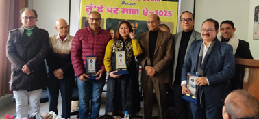 | Tawi Tales, Juhi and Behrupia bag "Tunde Par Maan Aai" annual awards | | | Early Times Report JAMMU, Dec 26: Celebrating voices that continue to enrich and reimagine the Dogri language in contemporary spaces, Watch O Suno Dogri on Thursday conferred its annual "Tunde Par Maan Aai" Award-2025 to individuals and platforms contributing significantly to Dogri culture through creativity and dedication. This year's honours were bestowed upon Raj Kumar Behrupia, known for his motivational content rooted in Dogri ethos; RJ and theatre artist Juhi Mohan; and Dr. Vikas Padha and Ajay Khajuria, the voices behind the popular Tawi Tales podcast. The award ceremony was graced by eminent literary figures, with celebrated Dogri poet Padma Shri Jitendra Udhampuri attending as the Chief Guest and noted writer Padma Shri Mohan Singh as the Guest of Honour. The function was presided over by Padma Shri Prof. Lalit Magotra, President of Dogri Sanstha Jammu. Instituted to be presented annually on Dogri Maanta Diwas, the "Tunde Par Maan Aai" Award comprises a memento and a shawl. Addressing the gathering, Prof. Lalit Magotra described the initiative as a meaningful encouragement to grassroots cultural work, while Padma Shri Jitendra Udhampuri urged the youth to take pride in and actively contribute to their linguistic heritage. Padma Shri Mohan Singh highlighted the importance of acknowledging dedicated but often unrecognized cultural contributors. In his closing remarks, Jagmohann Sharma 'Yoon Hi', the founder of Watch O Suno Dogri, reaffirmed organization's commitment to nurture Dogri language and culture through innovative platforms and community-driven initiatives. |