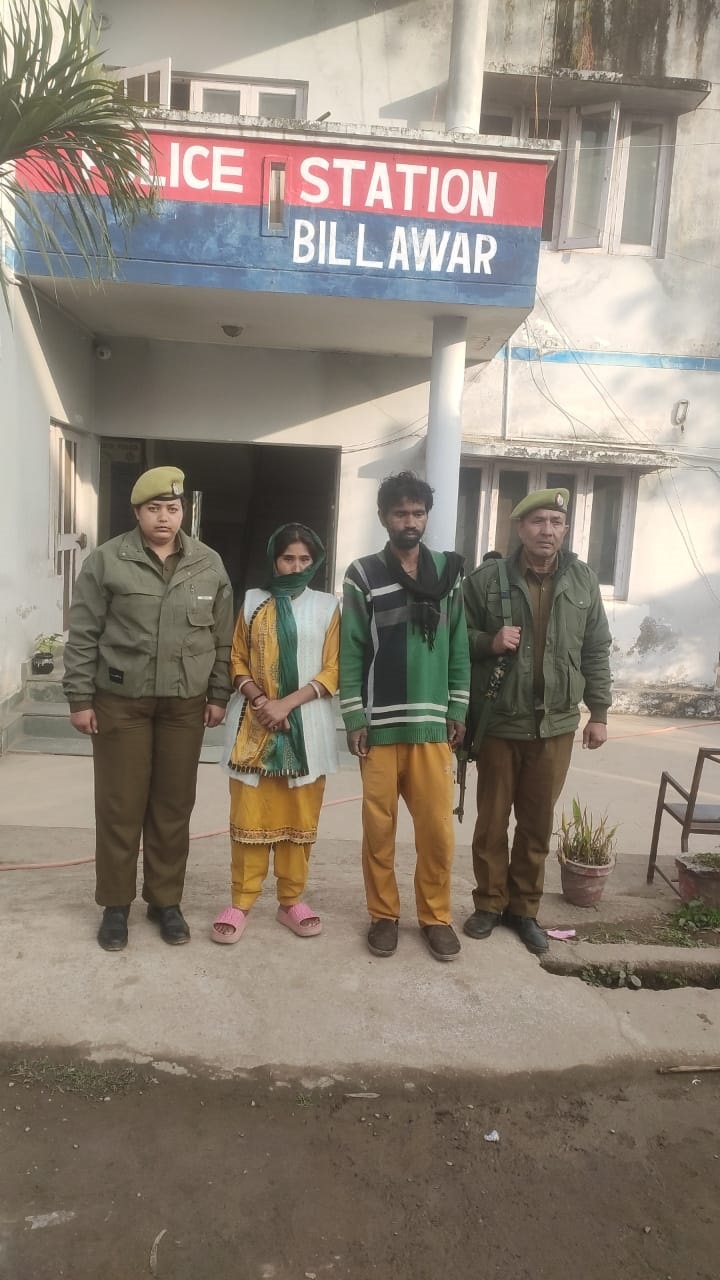 Kathua, Dec 29: J&K Police Kathua under the overall supervision of SSP Kathua Ms. Mohita Sharma IPS traced out one missing lady and handed over to her legal heirs in the jurisdictional area of PS Billawar. On 26-12-2025 one Person namely Bantu Ram S/O Angrezo R/O Mooni Tehsil Billawar District came at this P/S and lodged a written complaint regarding missing of his wife namely Babli Devi W/o Bantu Ram R/o Mooni Age- 30 years. On receiving complaint a missing report was entered at this P/S vide GD No. 17 dated 26-12-2025 and a team of Ps Billawar led by SHO Billawar Insp Zaheer Mushtaq under the supervision of SDPO Billawar Sh Neeraj Padyar searched various places and with the help of technical assistance along with timely human intervention recovered the missing lady. After completing all legal formalities the said missing lady handed over to her legal heirs. Moreover missing report stands closed. |