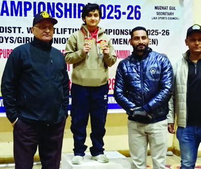 Early Times Report JAMMU, Jan 16: Delhi Public School, Jammu proudly celebrates the remarkable achievement of Mahika Sharma, a student of Class XI-G (Session 2025-26), who delivered an exceptional performance at the Jammu & Kashmir UT Weightlifting Championship 2025-26 and the Jammu District Weightlifting Championship, held at the Multipurpose Sports Complex, Bhagwati Nagar, Jammu. Competing in both the Youth and Junior categories, Mahika displayed extraordinary strength, discipline, and sportsmanship, securing an impressive four medals across district and Union Territory levels. At the Jammu District Weightlifting Championship, Mahika clinched two Gold Medals, establishing her dominance and earning top honours in her category. Continuing her stellar performance at the J&K UT Championship, she added two Silver Medals to her tally while competing against the best weightlifters from across the Union Territory. Medal Tally at a Glance Jammu District Championship: 2 Gold Medals J&K UT Championship: 2 Silver Medals Mahika's achievement stands as a testament to her relentless hard work, disciplined training, and unwavering commitment to excellence. Her success has brought immense pride to the school and serves as a powerful inspiration for young athletes aspiring to excel in competitive sports. The esteemed management of DPS Jammu under the visionary leadership of Hon'ble President-RCT, Sh. M.K Ajatshatru Singh Ji, Distinguished PVC-Kuwarani Dr. Ritu Singh Ji, Hon'ble Director-Sh, S.S Sodhi Ji along with Principal, Ms. Ruchi Chabra and staff extended their heartfelt congratulations to Mahika and wished her continued success in future competitions at the national and international levels. |