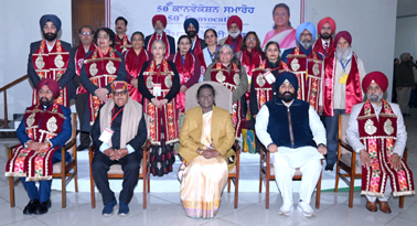 Early Times Report AMRITSAR, Jan 16: Guru Nanak Dev University successfully organised its 50th Golden Jubilee Convocation on Thursday at the Golden Jubilee Convention Centre, Guru Nanak Dev University Campus with great academic fervor and dignity. The historic convocation was graced by the Hon'ble President of India, Smt. Droupadi Murmu, who delivered an inspiring Convocation Address encouraging students to serve the nation with knowledge, innovation and ethical values. The ceremony was held in the august presence of the Hon'ble Governor of Punjab and Chancellor, GNDU, Sh. Gulab Chand Kataria. Education Minister of Punjab S. Harjot Singh Bains was especially present on the Dias. The President and other distinguished guests were warmly welcomed by Prof. Karamjeet Singh, Vice-Chancellor, Guru Nanak Dev University, who in his address highlighted the glorious legacy of the University, its academic achievements and its commitment to excellence in education, research and innovation. Among others MLA S. Harbhajan Singh ETO, MP S. Gurjeet Singh Aujla and other dignitaries were present on this occasion. On this landmark occasion, the Hon'ble President of India, Smt. Droupadi Murmu conferred Honorary Doctorate Degrees (Honoris Causa) upon two eminent personalities Dr. Vikramjit Singh Sahney, Member of Rajya Sabha, visionary entrepreneur and philanthropist for his outstanding contribution to society and nation-building and Sh. Jasvir Gill, Chief Executive Officer, Alert Enterprise Inc., California (USA), for his remarkable global leadership in the technology sector. On this occasion, 17 medals, 176 PG/UG Degrees and 258 Ph.D degrees were awarded. Hon'ble President of India, Smt. Droupadi Murmu expressed delight that Guru Nanak Dev University was founded amid the 500th birth celebrations of Sri Guru Nanak Dev Ji, with his profound teachings and ethos serving as its enduring compass. She described Guru Nanak Dev Ji's wisdom as our collective legacy, his insights and principles lighting the route to universal human flourishing. By weaving these into our daily lives, she added, we unlock remedies for countless societal ailments. The President recalled that Guru Nanak Dev Ji championed equality for women in all spheres of life. She took particular pride in GNDU's alignment with this vision through proactive women's empowerment, as reflected in the strong presence of female achievers claiming degrees and accolades during the ceremony. She asserted that empowering women to advance with unbridled assurance is essential for societal harmony and national vitality, calling on all to champion this cause. She appreciated the achievements of the University and credited its success to Faculty, student and Vice Chancellor, Prof. Karamjeet Singh. She also expressed her happiness over the increasing number of girl students in education. |