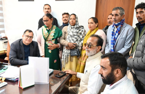 | Javid Dar assesses development issues, assures time bound action | | | Early Times Report JAMMU, Jan 21: Minister for Agriculture Production, Rural Development Department and Panchayati Raj, Cooperative and Election Department, Javid Ahmad Dar, today met several delegations and individuals at the Civil Secretariat Jammu to assess and address issues related to development works and service matters. Various delegations from Jammu, Udhampur and various districts of Kashmir highlighted concerns regarding rural infrastructure, road connectivity, irrigation facilities, drinking water supply, implementation of Panchayati Raj schemes, employment-related issues and pending development projects. The Minister issued on the spot directions to the concerned departments to examine the issues for early resolution. He emphasized that the government is focused on accelerating development works at the grassroots level, especially in rural and remote areas to ensure equitable growth. Javid Dar reaffirmed the government's commitment towards strengthening the Panchayati Raj institutions, improving service delivery and ensuring effective implementation of development schemes under Agriculture Production and Rural Development sectors. He stressed that quality execution and timely completion of projects remain a key priority. The Minister assured the delegations that their grievances would be addressed on a priority and time-bound basis, adding that the government is taking all necessary measures to fulfil the aspirations of the people and ensure sustainable development and prosperity across Jammu and Kashmir. |
