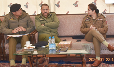 Early Times Report REASI, Jan 22: Ahead of the forthcoming Republic Day-2026 and in view of the prevailing security scenario, a high-level Joint Security Reivew Meeting of twin districts was conducted on 22.01.2026 at Police Station Pouni. The meeting was jointly chaired by Sarah Rizvi, IPS, DIG Udhampur-Reasi Range and Tejinder Singh, IPS, DIG Rajouri-Poonch Range, reaffirming the unwavering resolve of security agencies to ensure a peaceful, incident-free and secure Republic Day celebration. The meeting witnessed the participation of senior officers from Police, Army and CAPFs, including Himanshu Kumar, DIG CRPF; Gaurav Sikarwar, IPS, SSP Rajouri; Paramvir Singh, JKPS, SSP Reasi; Manoj Verma, CO CRPF 126 Bn; Jitender Kumar yadav, CO CRPF 72 Bn; Col. Madhu Sudan, CO Army 63 RR; Iftkhar Ahmed, JKPS, Addl. SP Reasi; Neeraj Sharma, 2 I/C CRPF 72 Bn; Prob. IPS Gaurav Tripathi, Coy Commander CRPF; Surinder Mohan, JKPS, Dy.SP PC Kalakote; Inspr. Rajiv Kumar, SHO P/S Sunderbani; and Inspr. Sumit magotra, SHO P/S Pouni, among others. During the deliberations, strong emphasis was laid on daily intelligence sharing, seamless inter-agency coordination to decisively counter militancy and anti-national activities. The chair stressed the need for robust area domination, heightened surveillance, intensified intelligence generation and swift information exchange among all stakeholders. All participating officers were directed to activate their respective resources and ground networks to generate actionable intelligence, ensuring that anti-national and anti-social elements are neutralized well in time and fail in their nefarious designs. The officers were also asked to maintain a high state of alertness and preparedness to guarantee the smooth, peaceful and dignified conduct of Republic Day-2026 across the region. The meeting concluded with a collective commitment by all forces to work in close coordination, uphold public safety and reinforce the security grid, reflecting a united front against any threat to peace and national integrity. |