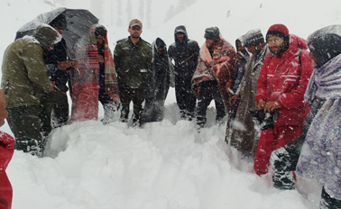 Early Times Report JAMMU, Jan 23: Today, Gool Police received a distress call that three persons namely 1.Manzoor Ahad s/o Mohd Shafi r/o Sangroo, Abdul Rashid s/o Abdul Aziz r/o Shikari, Mohd Hafiz s/o Abdul Rashid r/o Sangroo Tehsil Mohore distt.Reasi were trapped in heavy snowfall near Potato Farm while they were travelling from Gool towards Mohore.On the receipt of this information, an immediate joint rescue operation alongwith team members of GREF was launched. A police party comprising of PSI Lovish Kumar,PSI Dheeraj Saini, PSI. Maqsood Ahmed,SPO Basit Ali ,SPO mubarak Ali,SPO Sajjad Ahmed and SPO Ashish Singh rushed to the spot. After trekking for approximately 10 kilometers through snow bound terrain and hostile weather conditions, the police team and the GREF members successfully traced and rescued all the stranded travellers. They were safely brought to Gool town, where necessary medical assistance is being provided to them. |