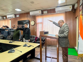 Early Times Report JAMMU, Jan 24: Zonal Police Headquarters (ZPHQ) Jammu on Friday observed National Voters' Day (NVD) by administering the NVD Pledge to officers and staff, under the directions of IGP Jammu. The pledge ceremony was led by the Staff Officer to IGP Jammu, Sh Shamsheer Hussain, JKPS, who addressed the gathering and administered the pledge. All officers and staff present collectively reaffirmed their commitment to the democratic values enshrined in the Constitution of India and to upholding the principles of democracy. Highlighting the significance of this year's theme, "My India, My Vote," the SO to IGP Jammu emphasised the importance of informed, ethical, and responsible voting in strengthening democratic institutions. He urged Officers and Officials of ZPHQ Jammu to actively support the Systematic Voters' Education and Electoral Participation (SVEEP) initiatives of the Election Department by encouraging wider public participation in the electoral process and promoting inclusive voter awareness. |