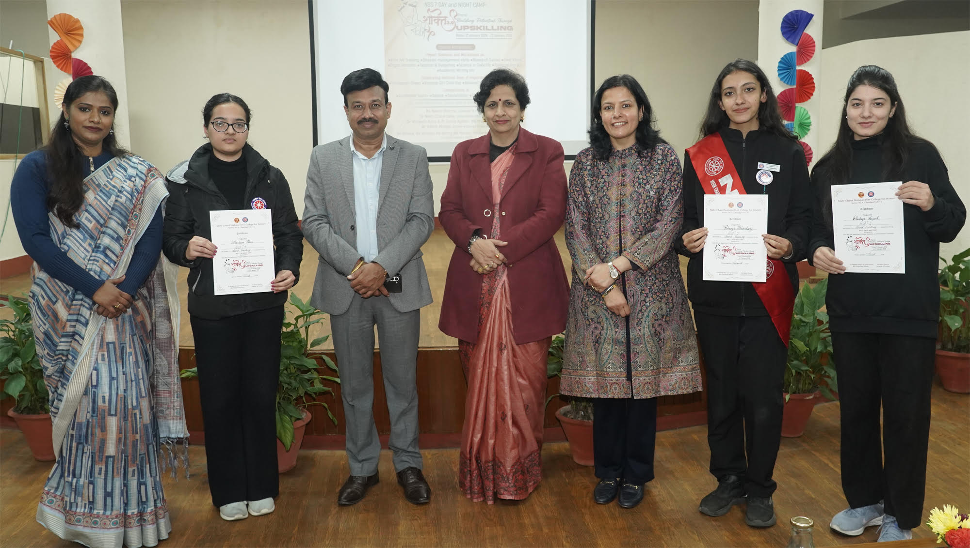 Chandigarh, Jan 29: The seven-day and night NSS Camp-‘Shakti 3.0’, organised at Mehr Chand Mahajan DAV College for Women, culminated successfully with a thoughtfully curated finale that encapsulated the spirit of learning, reflection and community service. The concluding day began with an expert session on ‘Urbanisation and the Challenge of Inclusive Urbanism’ by Prof. Kulwinder Kaur, Department of Sociology; Honorary Director, Centre for Comparative Religions and Civilizations; and Honorary Director, MMTTC, Jamia Millia Islamia, New Delhi. The session sensitised NSS volunteers to the complexities of rapid urban expansion and underscored the importance of equitable, sustainable and people-centric urban planning. Prof. Kaur encouraged the participants to critically engage with issues of accessibility, inclusivity and social responsibility in contemporary urban spaces. This was followed by the valedictory ceremony, during which volunteers who demonstrated exceptional talent, enthusiasm and commitment throughout the camp were felicitated. Awards were presented for various competitions and activities organised during the camp, including the talent hunt, declamation contest, hand painting and other creative engagements. The valedictory ceremony was graced by Dr. Parveen Goyal, Associate Professor, UIET, Panjab University, and NSS Programme Coordinator, Panjab University. Appreciating the dedication, discipline and active participation of the volunteers, Dr. Goyal highlighted the pivotal role of NSS in nurturing socially conscious and responsible citizens. He commended Shakti 3.0 for offering a holistic platform that seamlessly integrated skill development, creativity and civic awareness. Officiating Principal Ms. Neena Sharma lauded the collective efforts of the NSS units and volunteers in making Shakti 3.0 a meaningful and impactful initiative. Emphasising the camp’s focus on upskilling and holistic development, she noted that it successfully fostered leadership qualities, social sensitivity and a strong sense of civic responsibility among the volunteers.