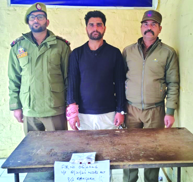 Early Times Report SAMBA, Feb 3: Continuing its drive against drug smugglers/peddlers, Samba Police has arrested a drug peddler in the jurisdiction of Police Station Ramgarh and recovered approximately 6.08 grams of heroin-like substance (chitta) from his possession. Acting on information received from reliable sources, a team of Police Station Ramgarh during patrolling on Abtal-Pardi Road, intercepted a pedestrian under suspicious circumstances who was coming from village Pardi and moving towards Abtal. During frisking, approximately 6.08 grams of heroin-like substance (chitta) was recovered from the possession of said person. The drug peddler identified as Sandeep Jamwal S/o Ajit Singh R/o Kotli Markalian tehsil Ramgarh district Samba has been arrested and contraband item has also been seized. A case FIR No. 06/2026 u/s 8/21/22 NDPS Act has been registered at PS Ramgarh and investigation started. |