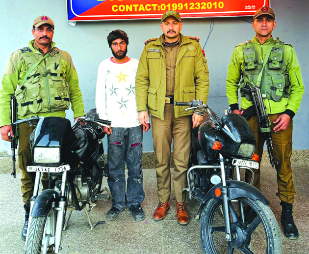 | Reasi police solve motorcycle theft case; two stolen bikes recovered | | | Early Times Report REASI, Feb 6: District Police Reasi achieved a significant breakthrough in a motorcycle theft case reported at Police Station Katra. A complaint was lodged at P/S Katra by Vijay Kumar S/O Krishan Lal R/O Marta, Tehsil Ramnagar, District Udhampur, regarding the theft of his motorcycle by some unknown person. Acting promptly on the complaint, Case FIR No. 16/2026 under Section 303(2) BNS was registered and investigation was set into motion. During the course of investigation, several suspects were rounded up for questioning. One suspect namely Rahul Kumar S/O Sham Lal R/O Sirla Bhaga, Tehsil & District Reasi, was apprehended. Upon sustained interrogation, the accused disclosed his involvement in the instant case. On his disclosure, the stolen motorcycle bearing Registration No. JK14 E 1734 was successfully recovered. Further questioning of the accused led to the recovery of another stolen motorcycle bearing Registration No. JK20 B 8113. The accused has been taken into custody and further investigation is underway to ascertain his involvement in other theft cases, if any. The whole operation was carried out by SHO P/S Katra Insp. Ranjeet Singh Rao, under the close supervision of SDPO Katra Dr. Bhishm Dubey, JKPS and SP Katra Vipan Chandran, JKPS. SSP Reasi Paramvir Singh-JKPS reiterated that District Police Reasi remains committed to ensuring the safety and security of the public and appeals to citizens to remain vigilant and report any suspicious activities to the nearest police station. |