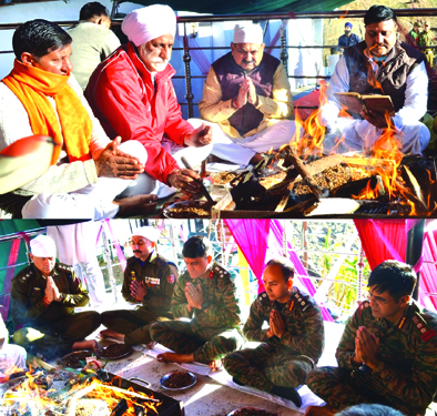 Early Times Report POONCH, Feb 15: Mahashivratri was celebrated with devotion and spiritual fervor across district Poonch. Thousands of devotees thronged the Shiv Khori Temple to pay obeisance amid a spiritually vibrant atmosphere. Men, women and children dressed in colorful attire, participated enthusiastically in the celebrations, while local food stalls set up along the route to the shrine added to the festive spirit of the occasion. On the auspicious occasion, the Deputy Commissioner, Ashok Kumar Sharma also paid obeisance at the revered Shiv Khori Temple and sought the blessings of Lord Shiva for sustained peace, prosperity and communal harmony. Deputy Commissioner, Brigade Commander 93infantry Brigade, Sachindra Joshi, Commanding Officer 12 Bihar, Vipan, Additional SP Mohan Lal, Dy. SP Hqrs Neeraj Sharma and other officers from the district administration, Army and Police performed Havan and participated in special prayers on the holy occasion. Senior Superintendent of Police, Shafket Hussain Bhat, officers from district administration and Army extended Mahashivratri greetings to devotees. The Management Committee of the Mandir accorded a warm welcome to the officers of the District Administration, Army and Police. Interacting with the pilgrims, the Deputy Commissioner conveyed heartfelt Mahashivratri greetings and emphasized that such sacred occasions reflect the rich composite culture of the region and further strengthen the bonds of brotherhood, harmony and mutual respect among all sections of society. |