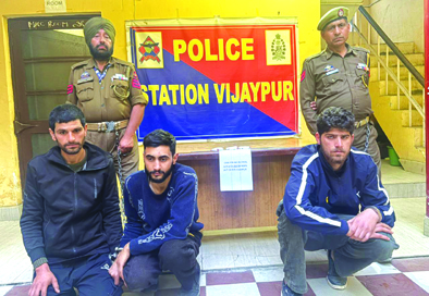 Early Times Report SAMBA, Feb 15: Continuing its drive against drug smugglers & peddlers, Samba Police has arrested three drug peddlers in the jurisdiction of Police Station Vijaypur and recovered approximately 7.85 grams heroin like substance from their possession. A Police team of Police Station Vijaypur during vehicle checking naka at Tarapur near Shamshan Ghat, Rakh Barotian Vijaypur, intercepted a car bearing registration No. JK09D-2038 (Baleno) for its checking. During checking, approximately 7.85 grams of heroin like substance was recovered from the possession of three persons travelling in the said car. The drug peddlers identified as 1. Shahid Shafiq S/o Shafiq Ahmed R/o Kupwara Tangdar 2. Younis Rafiq S/o Mohd Rafiq R/o Rawalpura, Gulzar Pura, district Srinagar and 3. Kamran Farooq S/O Farooq Ahmed R/o Gulshan Nagar, Nowgam, district Srinagar have been arrested. The contraband item alongwith vehicle has also been seized. A case FIR No. 26/2026 under relevant sections of the NDPS Act has been registered at PS Vijaypur and investigation started. |
