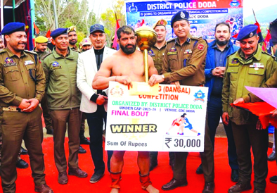 Early Times Report DODA, Feb 17: In continuation to its initiatives to promote youth engagement, sports culture, and community bonding, Doda Police organised a grand Wrestling Competition (Dangal) at Government Degree College (GDC) Doda under the Civic Action Programme (CAP) 2025-26. The event was graced by SSP Doda, Sandeep Mehta, JKPS, as the Chief Guest, along with Nodal Officer CAP, Mohd Aslam, ASP Headquarters Doda, senior police officers, officials, and members of the civil Society. The competition witnessed enthusiastic participation from local as well as outside wrestlers and drew a large gathering of spectators from across the district and neighbouring areas particularly the youth. A total of 23 bouts were conducted during the competition, including initial bouts, small bouts, special bouts, semi-finals, and the grand finale, with attractive cash prizes awarded to winners and runners-up at each stage, as detailed below: Semi-Final Bouts - 02*. (Ist Semi Final) Surjeet (Reasi) vs Harnam (Jammu), (2nd Semi Final) Nadeem (Doda) vs Aqib (Billawar), In Ist Semi final Surjeet (Reasi) won the wrestling and awarded with Cash prize Rs 15,000/- and in 2nd Semi Final Nadeem (Doda) won the wrestling and cash prize Rs 15,000/- were also given to him. Runner-up of the semi final were also awarded ?10,000 each. In Grand Finale Bout - 01:, Nissar (Doda) vs Bablu (Udhampur), Winner: Cash prize Rs 30,000, Runner-up: Cash prize Rs 20,000, *Nissar (Doda) won the wrestling and awarded with Cash prize Rs 30,000/- Runner-up: Bablu (Udhampur) was awarded with Cash prize Rs 20,000/-. The event was organized in a highly disciplined and sportsmanlike environment. The initiative aimed at promoting traditional sports, healthy competition, physical fitness, and positive youth engagement, while strengthening police-public relations. While speaking on the occasion, Mr. Mehta said that these kinds of sports events provide platform to the young players to display their talent and encourage them to participate in bigger competitions at state and national level. He also urged that the parents must encourage their children to participate in sports activities so that the negative cults in the society do not impact them. The participants and spectators lauded Doda Police for organising such a vibrant and culturally rich sporting event and expressed gratitude for encouraging local talent and preserving the traditional sport of wrestling. |