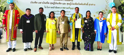 VELLORE, Feb 19: VIT Vice President, Sankar Viswanathan, has been conferred the honorary degree of Doctor of Philosophy in Engineering and Technology Management by the Rajamangala University of Technology Krungthep (RMUTK), Thailand. The prestigious degree awarded following the unanimous approval of the University Council. This honour recognises Mr. Sankar's exceptional leadership, professional achievements, and his significant contributions to the advancement of engineering and technology management from Palakorn Suwanrath, Privy Council of Thailand and Dr. Pichai Janmanee, President Rajamangala University of Technology Krungthep (RMUTK). The honorary degree symbolises the highest level of academic recognition bestowed by the institution for distinguished service and professional excellence. In his acceptance address Dr. Sankar acknowledged the shared culture and knowledge systems of India and Thailand and urged for more active academic collaboration between the two countries. The Ceremony was attended by VIT Chancellor G Viswanathan, Ramani Balasundaram, Assistant Vice President Kadhambari S. Viswanathan, Dr. Sravan Krishna. |