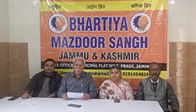 Jammu, Feb 21: Bhartiya Mazdoor Sangh Jammu Kashmir has decided to hold protest demonstration in accordance with the directions from central BMS on 25 February as part of nation vide dharna pardarshans before deputy commissioners offices all over the state in support of workers demands and resolutions adopted in BMS 21 triennial conference held from 6-8 February at Puri Odisha and will submit memorandum of demands to Prime minister and Chief minister through Deputy Commissioners BMS has adopted resolution and demanded from central Govt. that Universal enforcement of labour laws for all sectors and all sections of workers without exception in the true sprit of Antyodaya, Rectification of workers concerns in two labour codes namely Industrial Relation code 2020 and Occupational Safety, health and working conditions code 2020, revival and strengthening of tripartite mechanism, immediate convening of the Indian Labour Conference, immediate increase in the thresh hold limit for coverage under ESI and EPF and similarly memorandum of state level demands will be submitted to Hon’ble Chief Minister said in the press conference by state General Secretary Neelam Sharma, President Dev Parkash among others Harbans Choudhary senior leader of BMS, Mukesh Kumar Dy General Secretary Sachin Bali vice president, Ravi Hans Secretary Subash Chander office secretary BMS and Bua Ditta also addressed the media. |