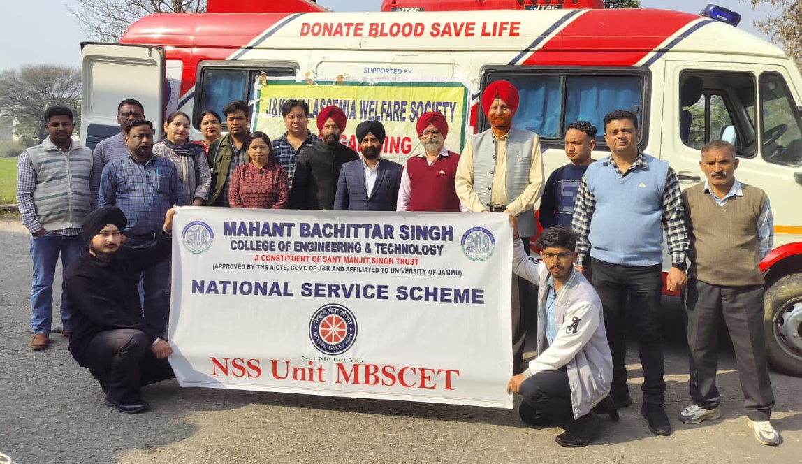 Early Times Report JAMMU, Feb 25: The NSS Unit and Red Ribbon Club of Mahant Bachittar Singh College of Engineering & Technology, in collaboration with J&K Thalassemia Welfare Society, organized a Blood Donation Camp at the college campus. The initiative brought together students, staff, and management in support of this noble and life-saving cause. The drive witnessed an impressive turnout and enthusiastic participation from volunteers across departments. The camp was coordinated by the NSS Unit under the leadership of Ripudaman Singh (Assistant Professor), Department of Mechanical Engineering. A medical team led by Dr. Rajat Kumar from Government Medical College, Jammu supervised the camp and provided essential medical support, ensuring that the donation process was conducted safely and efficiently. Students and staff members donated blood generously, demonstrating compassion, solidarity, and a strong sense of social responsibility. A large number of first-year students participated wholeheartedly in the camp. The faculty of the Applied Sciences and Humanities Department, headed by Ms. Sarbjeet Kour, actively assisted in mobilizing donors, managing registrations, and extending logistical support throughout the event. This altruistic effort will significantly benefit individuals suffering from thalassemia who require regular blood transfusions. Er. Sudhir Sethi, President of the J& K thalassemia welfare society, played a key role in coordinating the camp and expressed gratitude to the college for its continued support. S. Gurnam Singh, Chairman of the institution, appreciated the organizing team for their dedicated efforts. Prof. Praveen Singh Dean Academics, and convener of event also donated blood. Dr. Amrik Singh, In-charge Principal, along with Mr. H. S. Gill (DSW), and all Heads of Departments, lauded the donors for their humanitarian spirit and commitment to the welfare of society. The event concluded with a message encouraging continued participation in such social initiatives, reaffirming the institution's dedication to community service and nation-building. |
