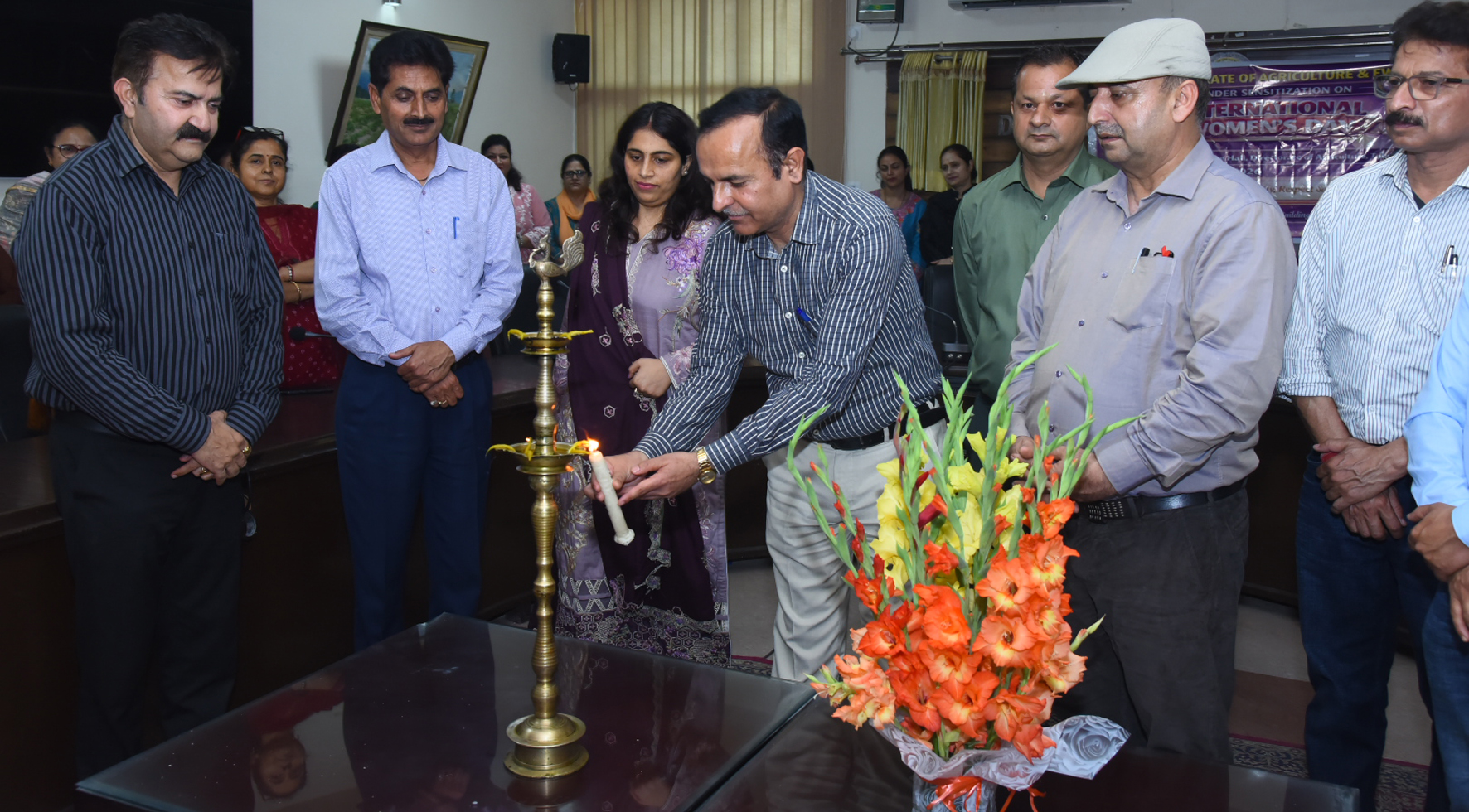 Early Times Report JAMMU, Mar 7: The Department of Agriculture Production and Farmers Welfare Jammu today organized a mega function to celebrate International Women's Day at the Conference Hall, Directorate of Agriculture, Talab Tillo, Jammu. The programme was inaugurated by Anil Gupta, Director Agriculture Jammu, in the presence of senior officers and staff of the department. Among others, Ashwani Sharma, Joint Director Agriculture (Inputs), Aman Jyoti Sharma, Joint Director Agriculture (Farms/SLUB), Sh. Sanjeev Rai Gupta, Deputy Director (Central)/Agriculture Chemist Jammu, sectoral heads, senior officers, and female officers and staff of the department attended the function. Speaking during the inaugural session, Director Agriculture Jammu Shri Anil Gupta said that the main aim of observing International Women's Day is to celebrate and acknowledge the crucial role played by women in ensuring the sustainability and growth of the agriculture sector. He highlighted that women Self Help Groups and progressive women farmers are making remarkable contributions in agricultural activities, agri-entrepreneurship, and allied sectors, thereby strengthening rural livelihoods and improving farm productivity. The Director further appreciated the dedication and hard work of women employees of the Agriculture Department, stating that their commitment and professionalism significantly contribute to the efficient functioning of the department and the successful implementation of various developmental programmes for farmers. During the programme, Vriti Uppal, Accounts Officer, along with other female officers of the Directorate, highlighted the significance of International Women's Day and expressed gratitude to the Director Agriculture Jammu for recognizing and appreciating the achievements and contributions of women employees in the department. On the occasion, female officers and staff members of the department were also felicitated and awarded in recognition of their achievements, dedication, and outstanding service in the agriculture sector. |