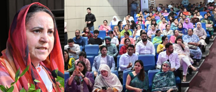 Early Times Report JAMMU, Mar 7: Minister for Education, Social Welfare, Health and Medical Education, Sakeena Itoo today remarked that women are playing a transformative role across all sectors and their contribution towards shaping our society is remarkable. The Minister made these remarks while addressing grand International Women's Day celebrations at Abhinav Theatre here today, organised by Mission Shakti in collaboration with J&K Academy of Art, Culture and Languages (JKAACL) under the theme 'Give to Gain'. Addressing a large gathering of women achievers, officers, students and social workers, the Minister highlighted that women today are playing a transformative role across all sectors including education, healthcare, administration, entrepreneurship, science, sports and social development and this day is observed to celebrate their achievements and recognitions in diverse fields. "Women are not only backbone of their families but a driving force behind the progress of society. Their resilience, determination and leadership are shaping a stronger and more inclusive future for our country," Minister Sakeena said. The Minister reaffirmed that the government is committed to ensure equal opportunities, dignity and safety for women and girls, noting that several initiatives are being implemented by Government to empower women and make them self sustainable. She underlined that education remains the most powerful tool for empowering women and enabling them to realise their full potential. She urged young girls to pursue their ambitions with confidence and encouraged families to support the aspirations of their daughters. "An educated and empowered woman uplifts not only her family but also the entire community. When women progress, the nation progresses," she stated. Citing example of Union Finance Minister, Nirmala Sitharaman, Minister Sakeena said that her achievement of leading one of the critical and important Ministry in central government is proof that women can lead in every field. She called upon the young girl students to make women like Nirmala Sitharaman as role model and demonstrate that determination and hard work can overcome any barrier. Congratulating the participants and women on International Women's Day, the Minister reiterated the government's resolve towards strengthening policies and programmes that ensure empowerment, safety and socio-economic advancement of women. In his welcome address, Mission Director, Mission Vatsalya/Mission Shakti, Nazim Zai Khan said that this special day is commemorated to celebrate the existence, achievements, and resilience of women and girls all across Jammu & Kashmir and entire Globe. |