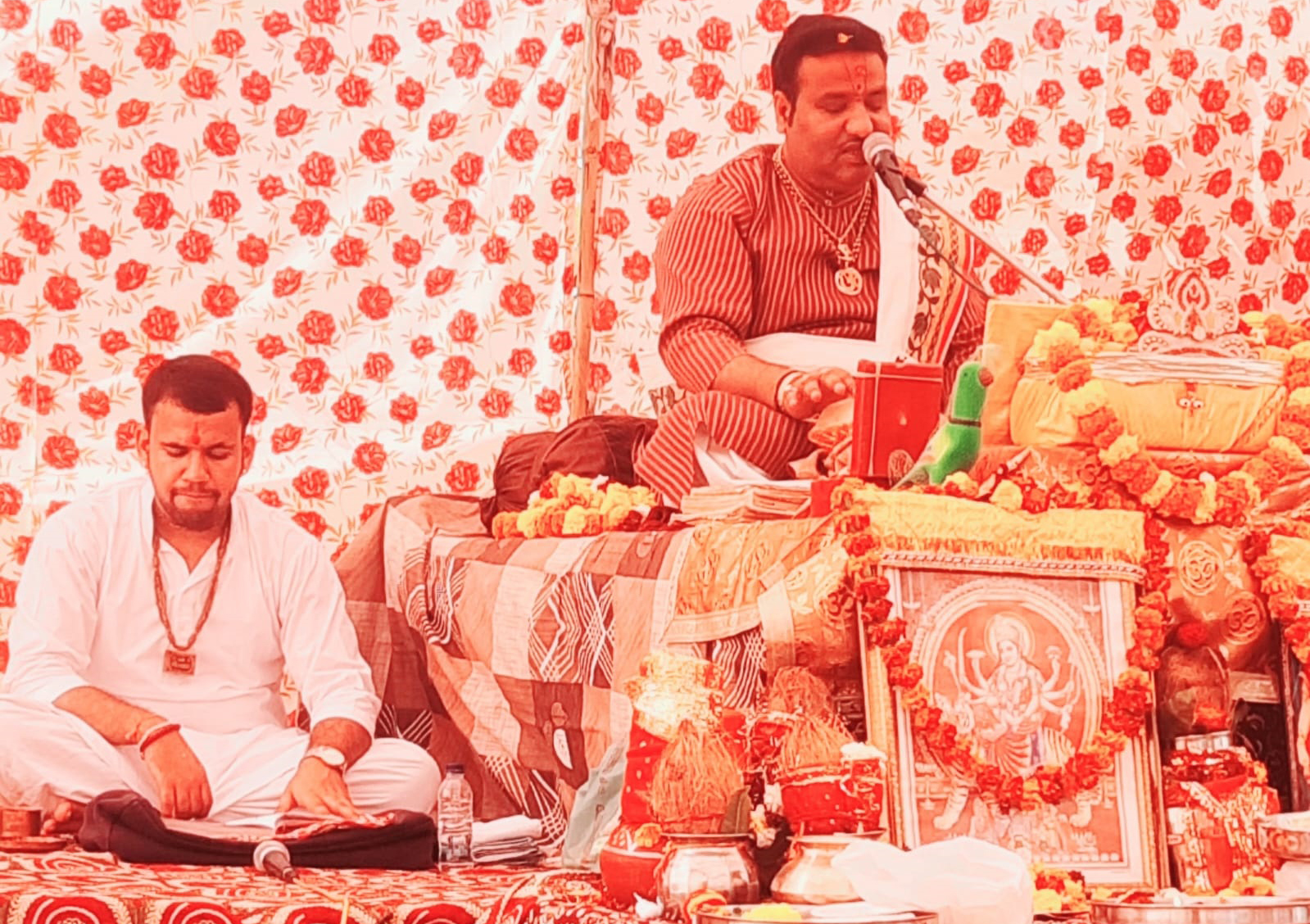 Early Times Report JAMMU, Mar 10: The Welfare Committee of Sector-3, EVS Colony, Lower Roopnagar is organizing an eight-day Shrimad Bhagwat Katha. Today was the second day of the Katha, where Acharya Shumant Krishan Shastri Maharaj (Kanaya), a renowned Katha Vachak from Vrindavan, delivered a soulful and inspiring discourse before a well-organized and devoted audience. Acharya Ji beautifully explained the importance of remaining connected with Sanatan Dharma, especially in present times, to strengthen moral and spiritual values. He emphasized that Grihastha Dharma is one of the most important paths in life when lived with devotion and righteousness. The continuous chanting of "Radhey Radhey" along with melodious Bhajans created a deeply devotional atmosphere and mesmerized the audience. He also highlighted that India, being a multi-religious country, celebrates festivals like Ram Navami, Shivratri, Janmashtami, Holi and many more, keeping the spirit of Dharma alive. The day's discourse concluded with Radhey Bhajans, Aarti, and distribution of Prasad. Here are some photo shots. |