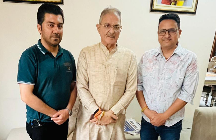 Early Times Report JAMMU, Mar 11: Abhinav Anand, Co-Convenor Trade Cell BJP J&K and President, Traders Association Trikuta Nagar, visited the Jammu residence of Kavinder Gupta to congratulate him after he took oath as Governor in Himachal Pradesh. He extended his heartfelt congratulations and best wishes to him on this proud occasion. Neeraj Deewan Co Convenor Professional Cell BJP J&k was also present. |
