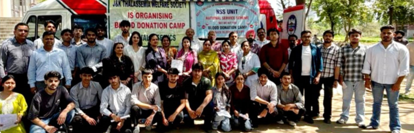 Early Times Report JAMMU, Mar 27: The Government College of Engineering & Technology (GCET), Jammu, in collaboration with the J&K Thalassemia Welfare Society, organized a blood donation camp on its campus today. The event reflected a strong spirit of community service and emphasized the importance of collective efforts in promoting health and well-being. The camp was inaugurated by the Principal, GCET Jammu, Prof. Sameru Sharma, who highlighted the life-saving significance of blood donation. Addressing the students, she emphasized that blood donation is a safe and healthy process, noting that the human body replenishes the donated blood within 4 to 8 weeks, while plasma is restored within 48 hours. She further stated that a single donation has the potential to save up to three lives. Prof. Sharma also highlighted that regular blood donation helps reduce excess iron levels in the body, thereby lowering the risk of heart diseases. She congratulated the donors, describing them as "life savers," and encouraged them to donate blood regularly every six months. The camp witnessed enthusiastic participation, with 60 students and staff members donating blood, and around 120 individuals undergoing haemoglobin testing and blood group screening. The event was graced by all Heads of Engineering Departments and Er. Sudhir Sethi, President of the J&K Thalassemia Welfare Society, who emphasized the importance of regular blood donation camps in supporting thalassemia patients. - The smooth conduct of the camp was ensured by coordinators Prof. Bhawna Sharma, Er. Sanjeev Gupta, Er. Sheetal Gandotra, and Dr. Raman Gupta. They commended the donors for their selfless contribution and emphasized the need to foster a culture of regular blood donation. Medical supervision was provided by Dr. Deepshika and her technical team from GMC & SMGS Hospital Jammu, ensuring the safety and well-being of all participants. The event also received valuable support from NSS volunteers Arnav, Usman, Anubhav, Kuldeep, Aneesh, Vinayak and Mahir along with senior staff members, who contributed tirelessly to its success. The coordinators expressed their sincere gratitude to all donors and encouraged greater participation from students and faculty in future blood donation drives, reiterating the importance of such humanitarian initiatives. |
