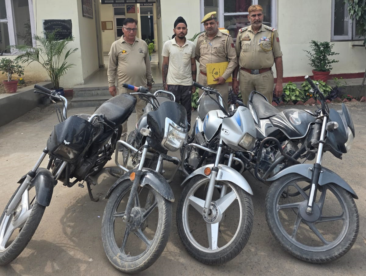 | Jammu police, South Zone recover stolen motorcycles, arrest accused under operation AVTAR | | | Early Times Report JAMMU, Mar 28: Jammu Police, South Zone, continues to achieve significant success under Operation AVTAR (Anti Vehicle Theft and Recovery)-a focused initiative aimed at curbing motor vehicle theft across Jammu district. Under this operation, Jammu Police is closely monitoring and steering anti-vehicle theft efforts across the district. In just 88 days of 2026, a total of 33 stolen vehicles have been recovered, including 26 two-wheelers and 7 four-wheelers. Notably, the South Zone alone accounted for 24 of these recoveries, marking a major breakthrough against organized vehicle theft networks. Working professionally Police Station Gangyal successfully solved a motorcycle theft case and apprehended the accused and recovered. The operation was conducted under the guidance of SP South and SDPO South, with active supervision of the SHO, Police Station Gangyal. The case originated from a complaint lodged by Karandeep Singh, a resident of Phinder, R.S. Pura, Jammu, regarding the theft of his Hero Splendor Pro motorcycle (Regn. No. JK02CL-1800) on 22 March 2026 from outside Sai Sehyog Hotel, Gangyal. Acting swiftly, FIR No. 31/2026 was registered under Section 303(2) of the Bharatiya Nyaya Sanhita (BNS). During the investigation, police teams conducted sustained searches and developed critical leads, which led to the arrest of the accused, Manmeet Singh S/o Jagjit Singh R/o Simbal Camp Jammu Further interrogation of the accused resulted in the recovery of four additional stolen motorcycles, thereby helping solve multiple theft cases. The continued success of Operation AVTAR highlights the professionalism, vigilance, and commitment of Jammu Police, South Zone, in protecting public property and dismantling criminal networks. The anti-vehicle theft drive will continue with renewed focus and intensified efforts. Jammu Police remains committed to the safety and security of life and property of citizens. |