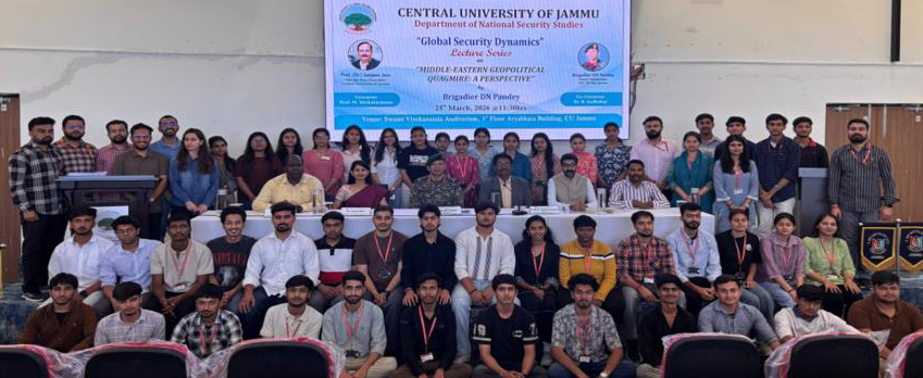 Early Times Report JAMMU, Mar 30: The Department of National Security Studies (NSS) at the Central University of Jammu (CUJ) successfully organized a distinguished event today as part of its "Global Security Dynamics" lecture series. The session, titled "Middle-Eastern Geopolitical Quagmire: A Perspective,". The proceedings commenced at the Swami Vivekananda Auditorium, located in the Aryabhata Building on the university campus. The event was inaugurated with a ceremoniaal Guard of Honaour presented to Prof. Sanjeev Jain, Honourable Vice Chancellor, CUJ and the Guest Speaker Brig. DN Pandey, Group Commander, NCC Headquarters, Jammu by the 4th Battalion NCC Cadets of the Central University of Jammu, marking the formal commencement of the day's academic activities. Dr. Neeta Rani, Head, Department of National Security Studies, delivered the welcome address, establishing a collaborative tone for the afternoon. This was followed by the introduction of the guest by Professor M. Venkataraman, Convenor of the program, who also delivered thematic remarks underscoring the critical importance of understanding Middle-Eastern instability within the broader context of global security. The event was presided over by the Honourable Vice Chancellor, Prof. Sanjeev Jain,in his presidential address, he emphasised the university's commitment to fostering deep intellectual discourse on international affairs and national security. The Vice Chancellor highlighted the significance of Security Studies as a discipline that enhances students' critical abilities to comprehend the complexities of global dynamics. Following these remarks, the department formally felicitated the guest speaker Brig. D. N. Pandey. Furthermore, Brigadier Pandey presented a memento as a token of respect to the Honourable Vice Chancellor on behalf of the NCC, Group Headquarters Jammu. Subsequently, Brigadier D.N. Pandey delivered his distinguished lecture, drawing from his extensive experience, providing a comprehensive analysis of the "geopolitical quagmire" currently defining the Middle East, and thereby exploring the historical underpinnings and contemporary power struggles that impact regional and global stability. The speaker also addressed the dimensions of Chinese intervention globally, emphasizing the Belt and Road Initiative (BRI), the China-Pakistan Economic Corridor (CPEC), and Chinese investments, further explaining how China's global strategy is functioning amidst the prevailing chaos. |