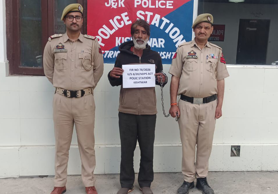 | Kishtwar police arrested drug peddler, cannabis recovered | | | Early Times Report KISHTWAR, Apr 12: In its ongoing drive against drug trafficking and substance abuse, Kishtwar Police arrested a drug peddler and recovered 70 grams of charas-like narcotic substance. SSP Kishtwar Sh. Naresh Singh-JKPS, sharing the details, said that a police party from Police Station Kishtwar, led by SHO PS Kishtwar Insp. Firdous Ahmed and assisted by PSI Punyadeep Singh along with their team, was on routine patrolling in the areas of Gurian and Lanyal under the supervision of Dy. SP Hqrs Kishtwar. The police team apprehended one suspect. Upon conducting a personal search, 70 grams of charas-like substance was recovered, and the accused was arrested on the spot. The accused disclosed his identity as Babar Hussain Sheikh S/o Ghulam Nabi Sheikh R/o Gurian. In this regard, Case FIR No. 78/2026 U/S 8/20 NDPS Act has been registered at PS Kishtwar, and investigation has been taken up. District Police Kishtwar follows a zero-tolerance policy against drug trafficking and will continue its relentless efforts to eradicate the drug menace and safeguard the youth and society at large. |