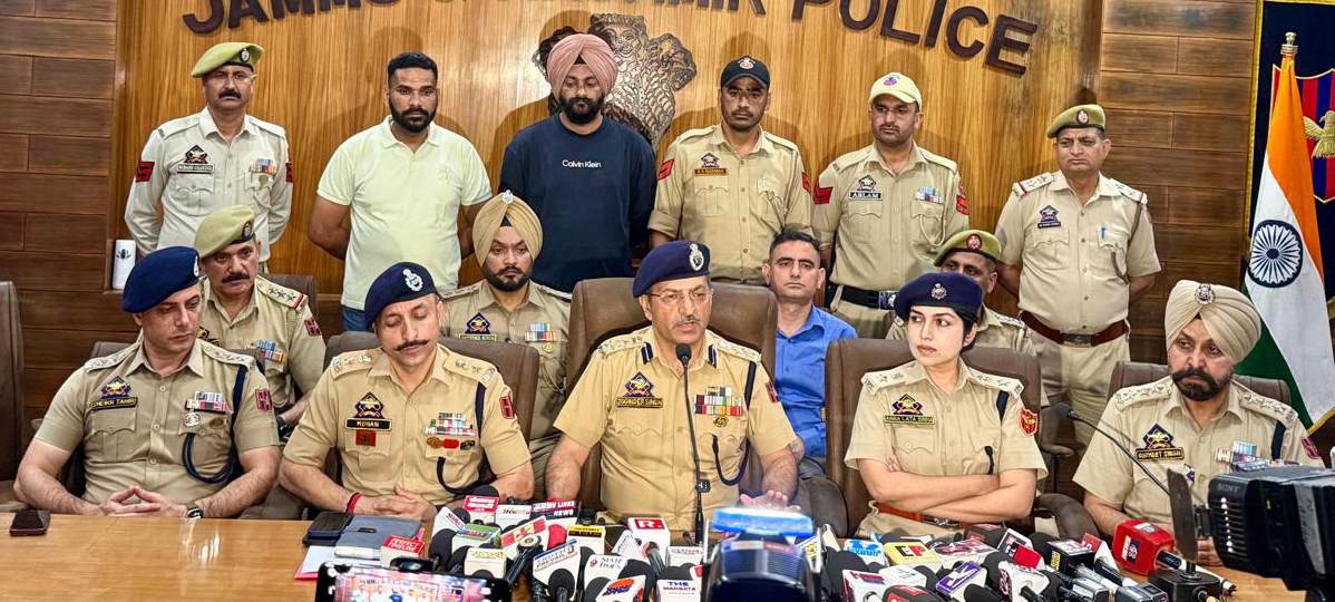 | Jammu Police busts Narcotics Nexus with Pak links | | | Early Times Report JAMMU, Apr 15: Today, SSP Jammu Shri Joginder Singh adressed a Press briefing on the arrest of wanted criminal Lau Gujjar and associates. He thanked the efforts of the Special Investigative Team (SIT) headed by SP Hqrs. Anna Sinha, IPS comprising Miran Sahib and Bishnah police which worked to uncover the ling-standing nexus. SSP Jammu Shri Joginder Singh informed the media persons that Gulzar Ahmed @ Lau Gujjar was a kingpin Gangster and Drug Lord wanted in 27 FIRs in Jammu alone and around 100 FIRs across the country under various aliases. He ran an interstate drug nexus across J&K, Punjab and Himachal Pradesh. The drugs were apparently sourced through drone droppings via his contacts in Pakistan. The kingpin gangster, wanted for Murder, extortion and narcotic crimes, was apprehended by Miran Sahib police on 4th April, 2026 post which the SIT was formed to uncover the entire nexus. So far several arrests have been made, raids conducted in the houses of associates and around 20 people have been called for questioning. Further investigation is on in the matter. Highlighting the broader approach under the "100 Days Sankalp" initiative, flagged by Hon'ble Lieutenant Governor of Jammu & Kashmir, Manoj Sinha, SSP Jammu stated that alongside strict enforcement, efforts are being made to rehabilitate drug addicts by sending them to de-addiction and rehabilitation centres. He urged the public to cooperate with police and act as a "360-degree eye" against crime and drug-related activities by sharing timely information. He assured that strict action will continue against all those involved in illegal activities, reaffirming the commitment of Jammu Police to ensure a safe, secure, and drug-free society. |