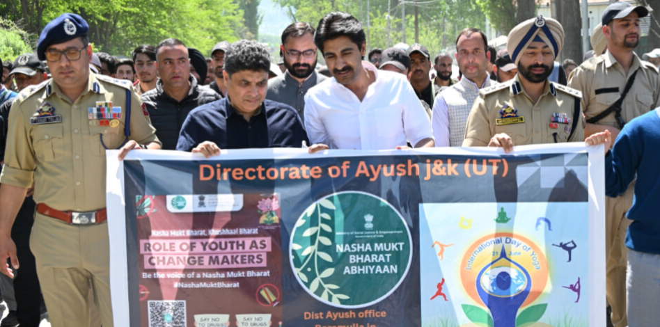 Early Times Report BARAMULLA, Apr 21: As part of the ongoing 100-day Nasha Mukht Jammu and Kashmir campaign, the District Administration Baramulla today organized a mega Padyatra to intensify awareness against drug abuse and promote a healthier, addiction-free society. Padhyatra was flagged off by Commissioner Secretary Social Welfare, Sarmad Hafeez who is also Distinct Mentor for 100 days NMBA campaign, from Dak Bunglow in presence of Deputy Commissioner Baramulla, S.F. Hamid, SSP Baramulla, Gurinderpal Singh, SSP Sopore, Iftikhar Talib, ADC Baramulla, Syed Altaf Hussain Musvi, ADC Sopore, S.A. Raina and saw enthusiastic participation from other officers, officials, civil society members, youth and a large number of students. The initiative aimed to sensitize people, especially the youth, about health consequences of drug addiction while encouraging them to adopt a positive and disciplined lifestyle. The padyatra traversed through key areas of Baramulla town and culminated at Showkat Ali Stadium Baramulla. Throughout the march, participants carried placards and raised slogans, powerfully highlighting the harmful effects of substance abuse and reinforcing the message of a drug-free society. Earlier, Sarmad Hafeez, chaired a comprehensive review meeting to assess the progress and enforcement of the Nasha Mukht Jammu and Kashmir initiative in district Baramulla. During the meeting, the commissioner secretary directed the district administration to intensify awareness campaigns at the grassroots level to penetrate every section of society, particularly targeting the youth, to educate them about the ill effects of substance abuse. He further urged officers to adopt innovative and engaging methods to combat the drug menace, including the involvement of national figures, sportspersons, and local icons who can effectively influence and inspire the younger generation.