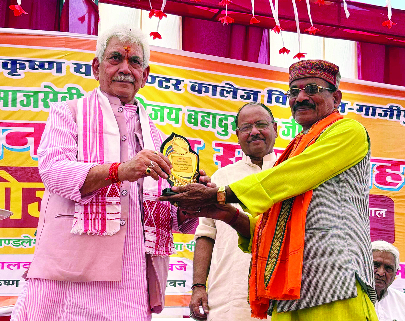 JAMMU, Apr 21: Lieutenant Governor Manoj Sinha on Tuesday called for building India which our freedom fighters once dreamed of and in which every section and every individual is part of the mainstream of progress. “India is moving decisively towards becoming a developed nation. The goal of 2047 is not merely a date; it is a national resolve,” the Lieutenant Governor said. The Lieutenant Governor was speaking at the statue unveiling ceremony of Shri Vijay Bahadur Singh, a well known social worker and the founder of Mahamandaleshwar Shri Bal Krishna Yati Inter College at Ghazipur, Uttar Pradesh. Paying homage to Shri Vijay Bahadur Singh, the Lieutenant Governor that he discharged his duties without any expectation, served without any desire for fame, and built not for himself but for the coming generations. The Lieutenant Governor emphasized that we must carry the ideals of Shri Vijay Bahadur Singh Ji, a true karma yogi, to every segment of society. “I feel particularly proud that Shri Vijay Bahadur Singh Ji did not ask what Bindravan could do for him; instead, he showed what Bindravan and the Jakhania region could do for themselves. This Inter College, born of a people’s movement, is just a small symbol of his transformative work. Vijay Bahadur Singh Ji did not merely establish a college; he made a pledge, a promise to the future. In 1974, when he laid the foundation of this institution, there was no major financial support and no assurance of success. All he had was an unshakeable belief that education is the power which can change society,” the Lieutenant Governor said. In his address, the Lieutenant Governor spoke about service, sacrifice and nation building. He highlighted that under the leadership of Hon'ble Prime Minister Shri Narendra Modi, India has taken development beyond mere statistics and carried it to every doorstep. The Lieutenant Governor said that Crores of families who once had no roof over their heads now have their own homes, and this has brought them dignity and security in society. Roads have reached every village, the number of airports has doubled, the digital revolution has connected every section of society. Today the marginalised section have bank accounts, they have an identity, they hold smart mobile phones for financial transactions, and in my view this is not merely technological progress but social empowerment In far flung regions of the country, new schools, new universities and a new education policy together have begun to build an India in which the hands of the youth hold the reins of the future. The facilities now available particularly for girls are unprecedented in our history, and the purpose of education through innovation and research is no longer merely to pass exams but to create an aware and responsible citizen,” he further said. |