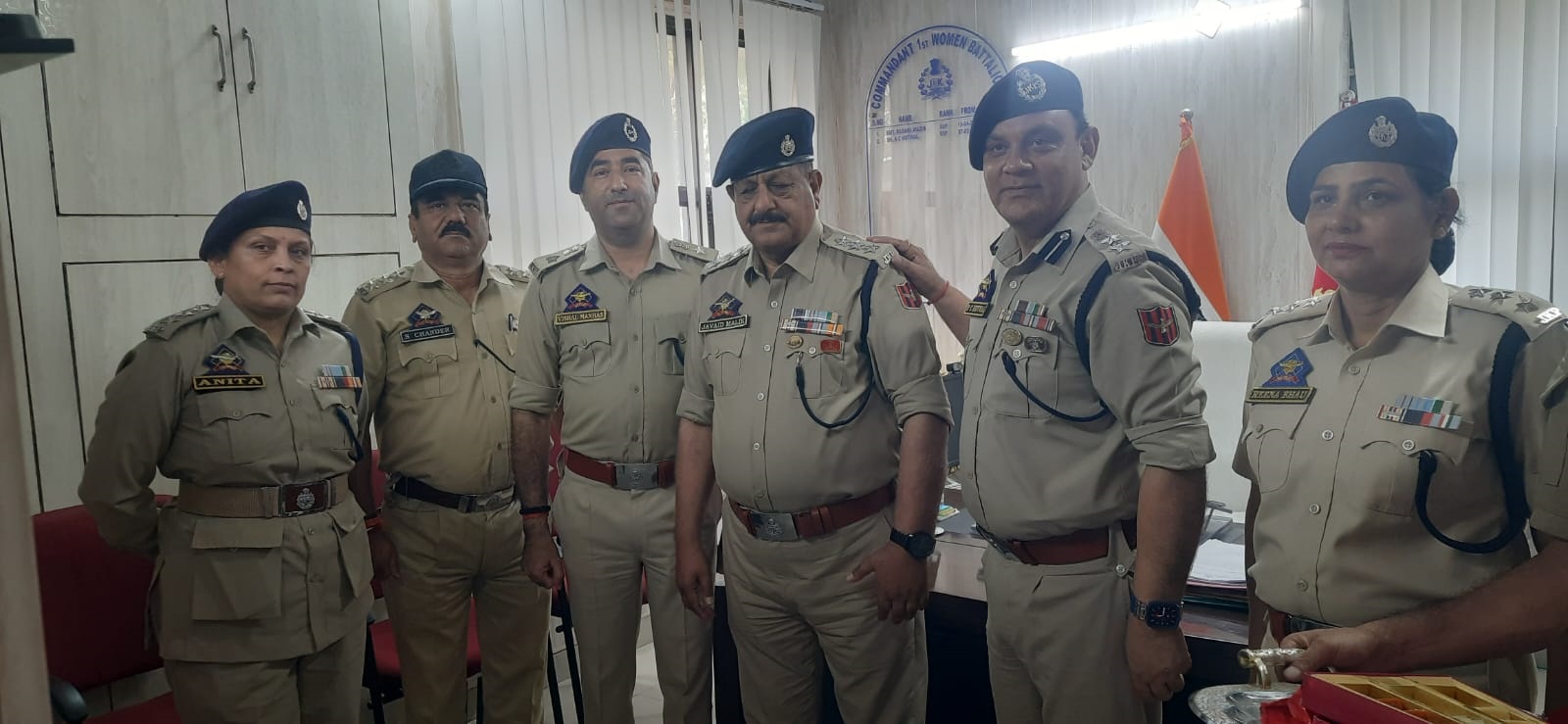 | Piping ceremony held at 1st Women Battalion, Channi Himmat, Jammu | | | Early Times Report JAMMU, Apr 23: Piping ceremony was held at 1st Women Battalion, Channi Himmat, Jammu for the promotion of Inspector Javaid Akhter (EXJ985731) to the rank of Deputy Superintendent of Police (DySP). On the occasion, the officer was formally decorated with his new rank by R.C. Kotwal, JKPS (SSP), Commandant, in the presence of Shri Vishal Manhas (SP), Subash Chander (DySP), Anita Katal (DySP), and Reena Devi (DySP). All officers congratulated him and wished him success in his new role. While addressing the gathering, R.C. Kotwal, Commandant, advised the officer to perform his duties with dedication and honesty. DySP Javaid Akhter thanked the department and senior officers for the promotion and assured that he will work with sincerity and commitment. The ceremony ended on a note of pride and happiness. |