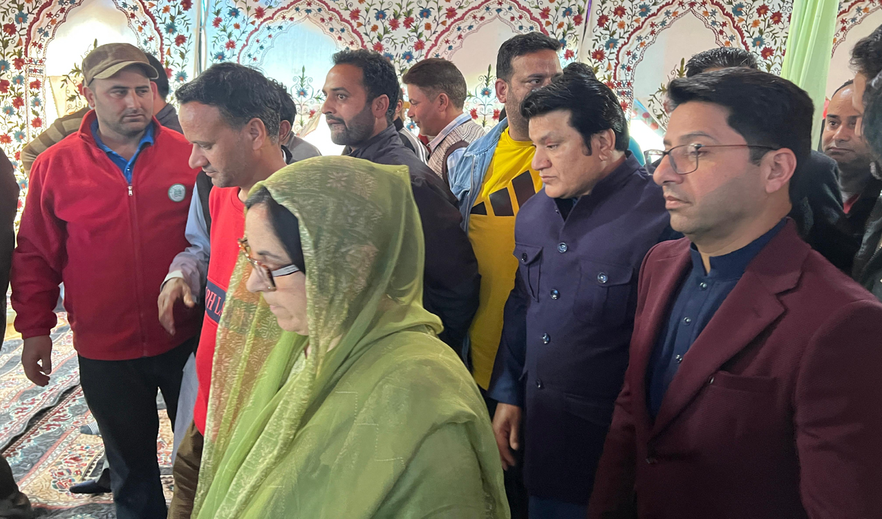 Early Times Report KULGAM, Apr 30: Minister for Health & Medical Education, Social Welfare and Education, Sakeena Itoo today visited Zainapora to offer her heartfelt condolences and express solidarity with MLA Showkat Hussain Ganie on the demise of her mother. During the visit, Minister Sakeena also interacted with the bereaved family members, sharing their grief and expressed solidarity with them. She prayed for eternal peace to the departed soul and strength to the family to bear the irreparable loss. The Minister conveyed her deepest sympathies with the grieving family during this difficult time. She expressed profound grief over the loss and also joined in prayers, hoping that the departed soul attains the highest place in Jannah. She also prayed for strength to the family members to bear this loss with courage and fortitude. MLA Pampore, Justice (Retd) Hasnain Masoodi; MLA Pahalgam, Altaf Ahmad Wani; MLA Devsar, Peerzada Feroze Ahmad and other local representatives also accompanied the Minister during the visit. |